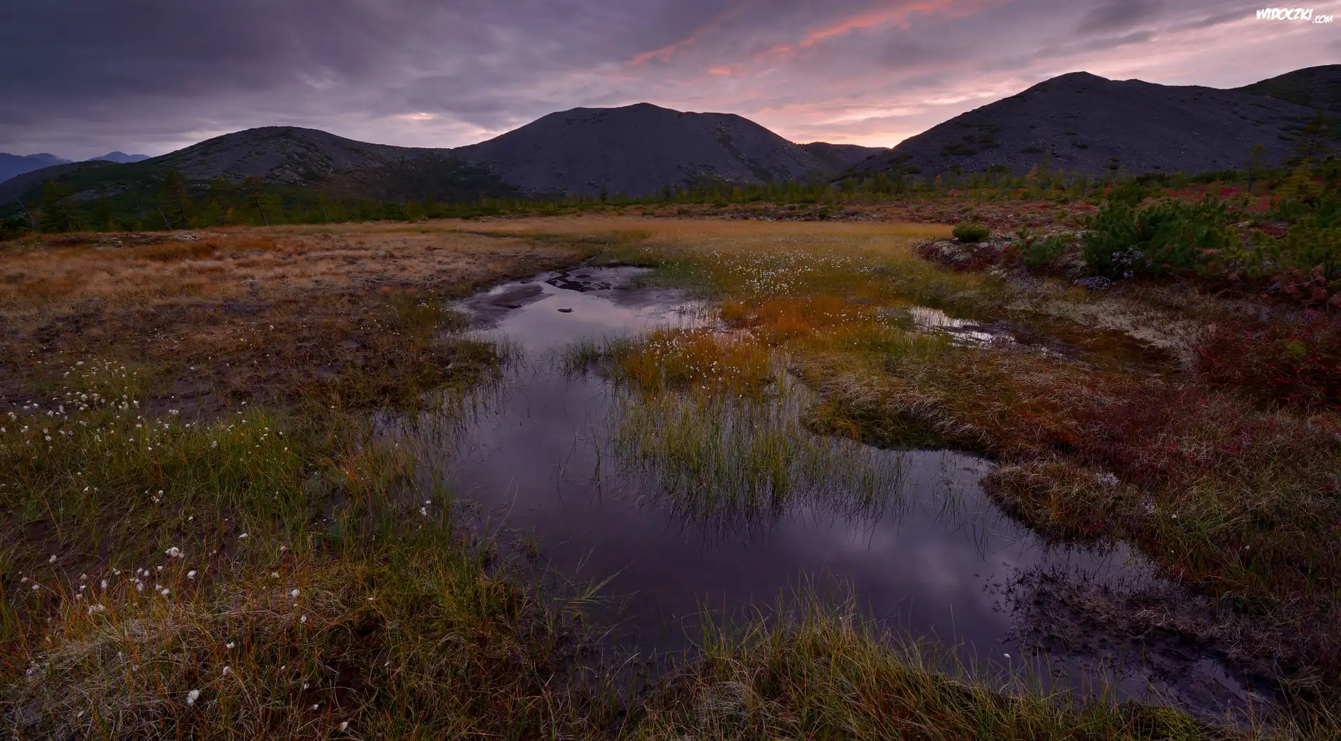 Zdjęcia, Rozlewisko, Góry, Trawa, Rośliny