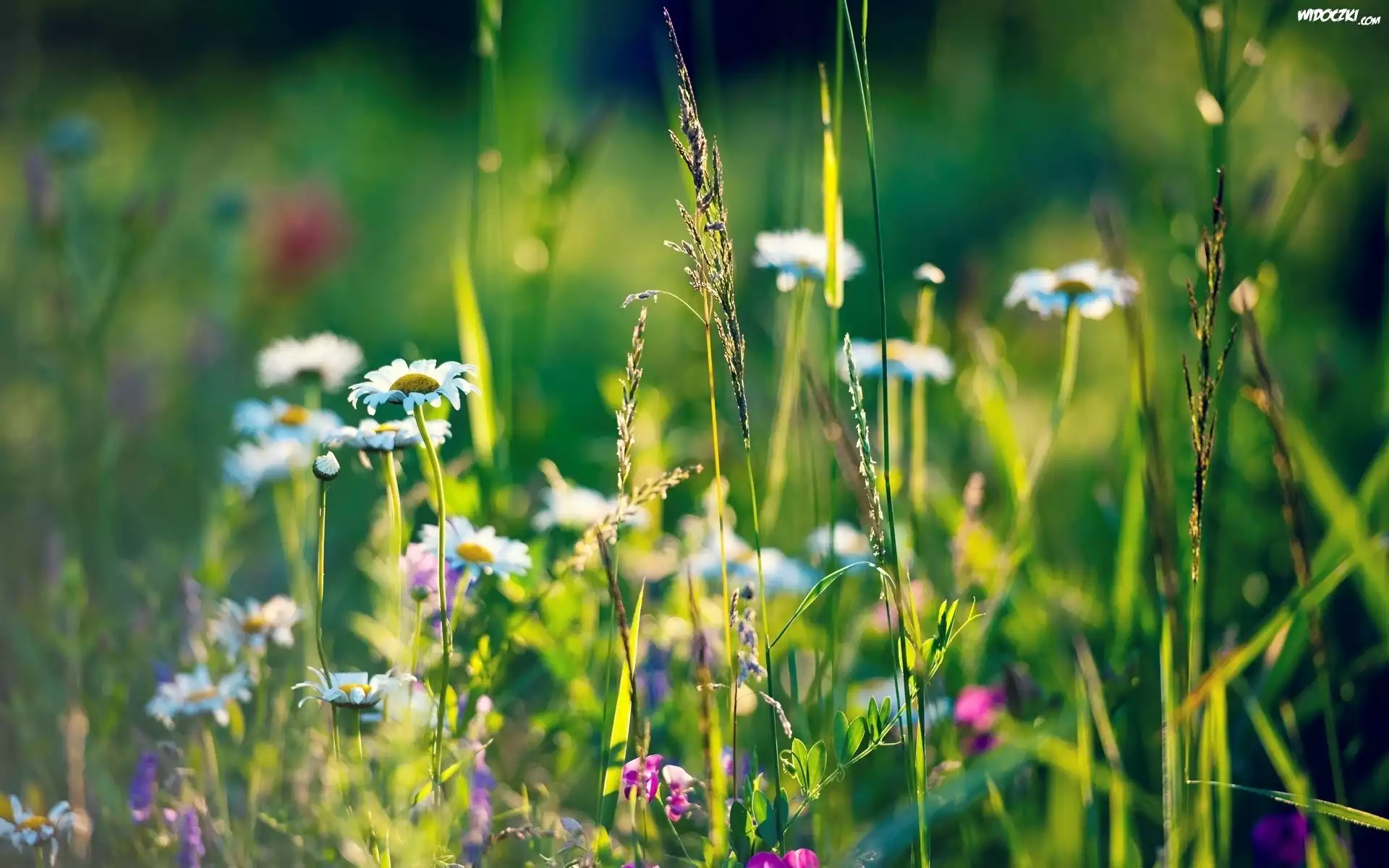 Łąka, Rumianki, Trawa, Rozmyte Tło