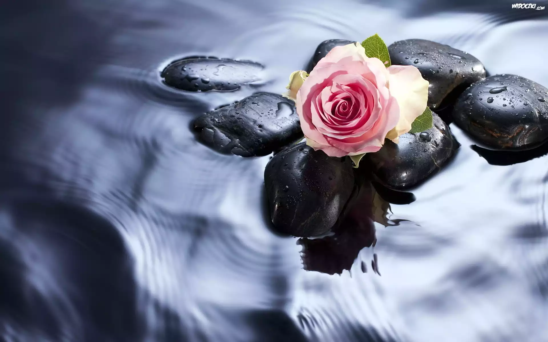 Zdjęcia, Różowa, Róża, Kamienie, Woda