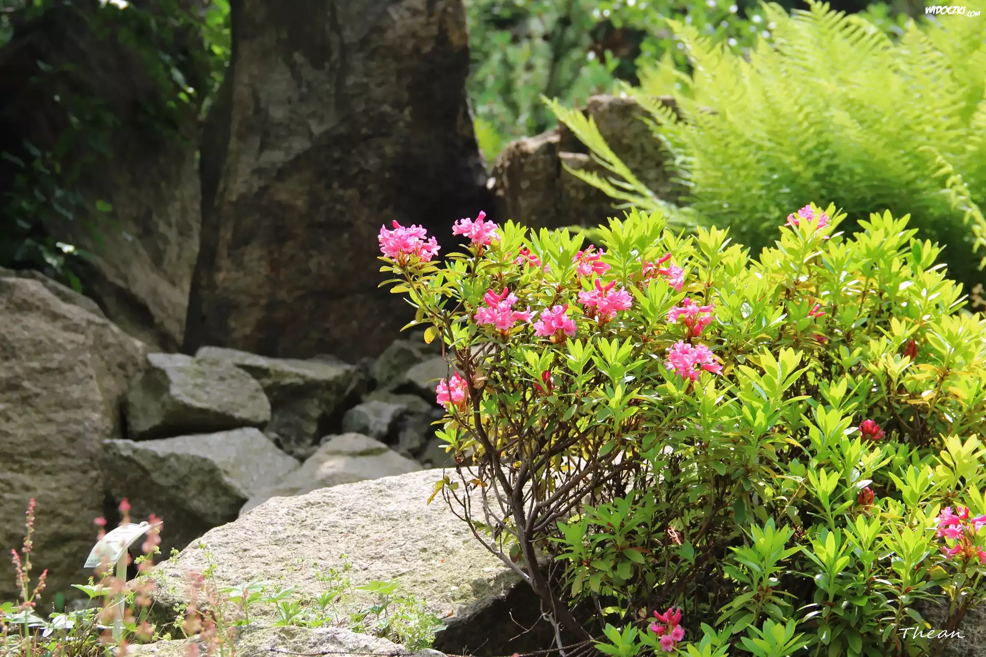 Zdjęcia, Różowe, Kwiaty, Krzewy, Kamienie