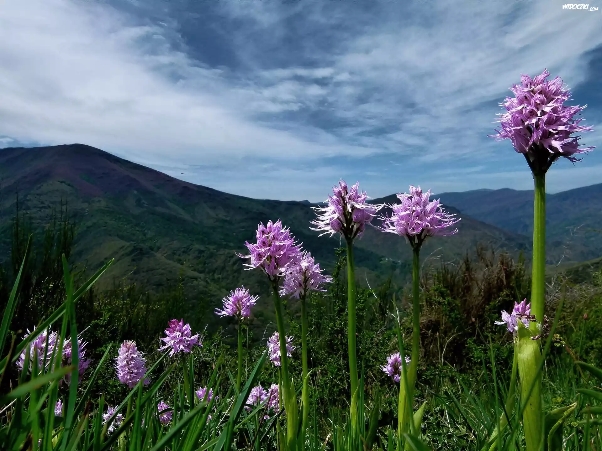 Zdjęcia, Różowe, Polne, Kwiaty, Góry