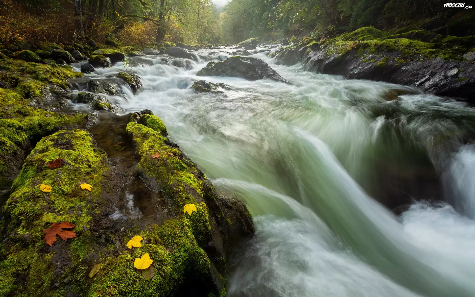 Zdjęcia, Rwąca, Rzeka, Omszałe, Skały, Kolorowe, Listki