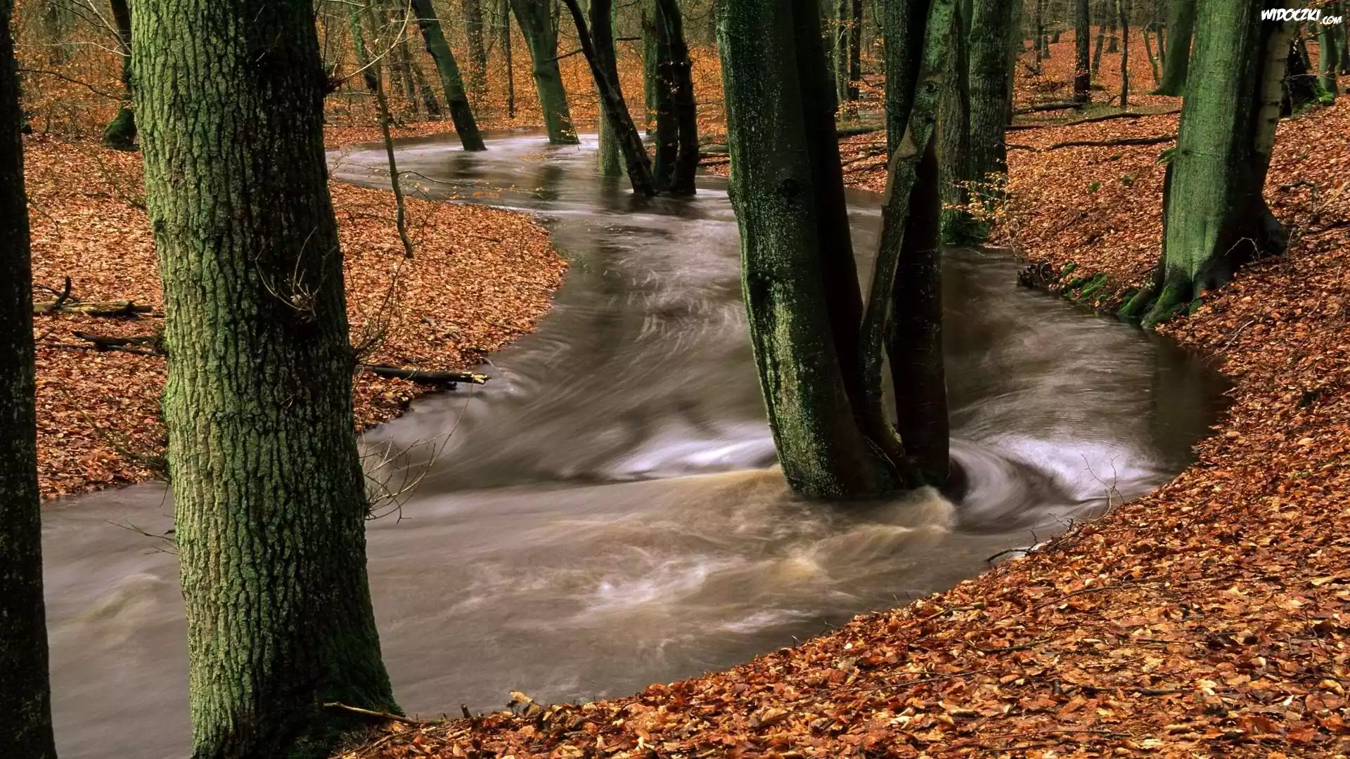 Zdjęcia, Rwąca, Rzeka, Las, Liście
