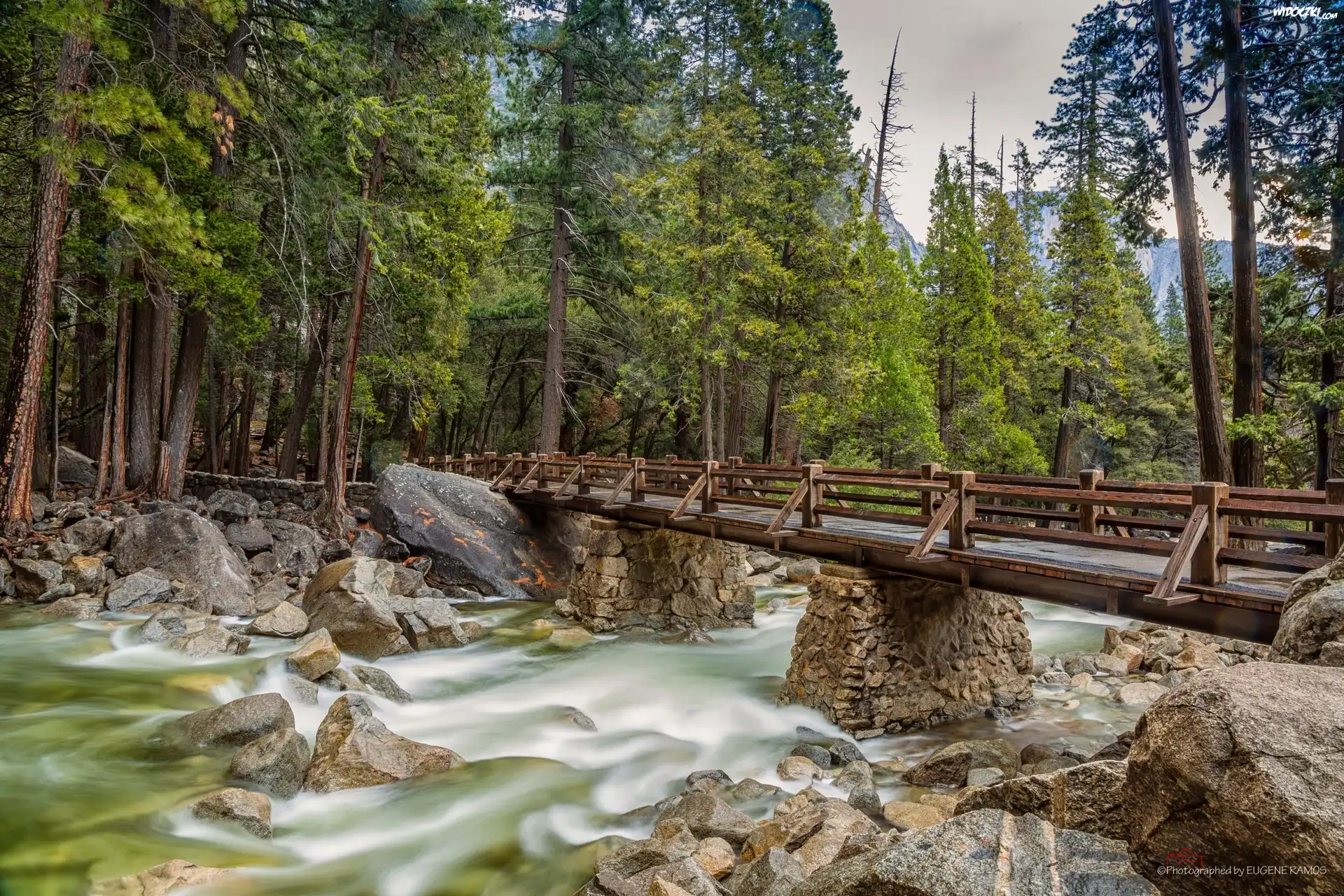 Zdjęcia, Rwąca, Rzeka, Kamienie, Most, Las