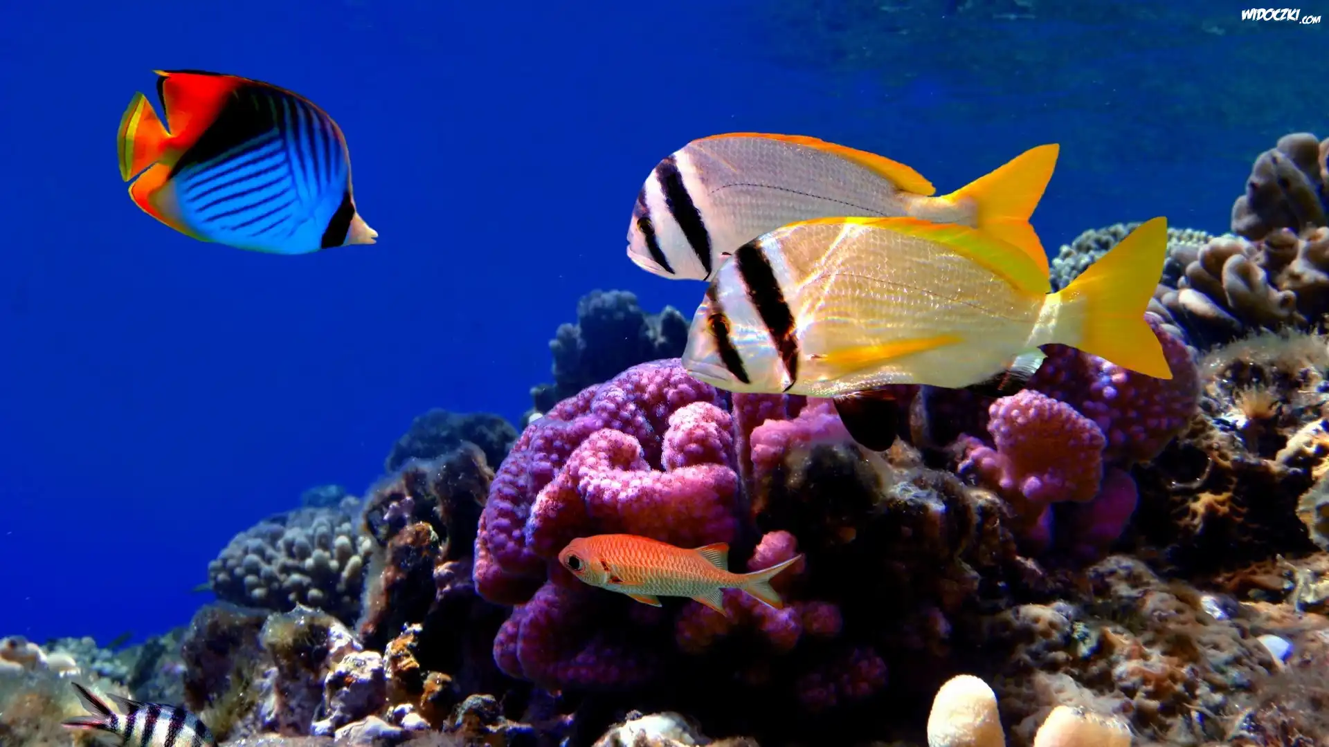 Morze, Rafa, Wyspa, Palmy Trzy, Delfiny, Rafa Rafa, Koralowa, Głębiny, Morskie, Ryby Rafa koralowa, Ryby, Morskie głębiny