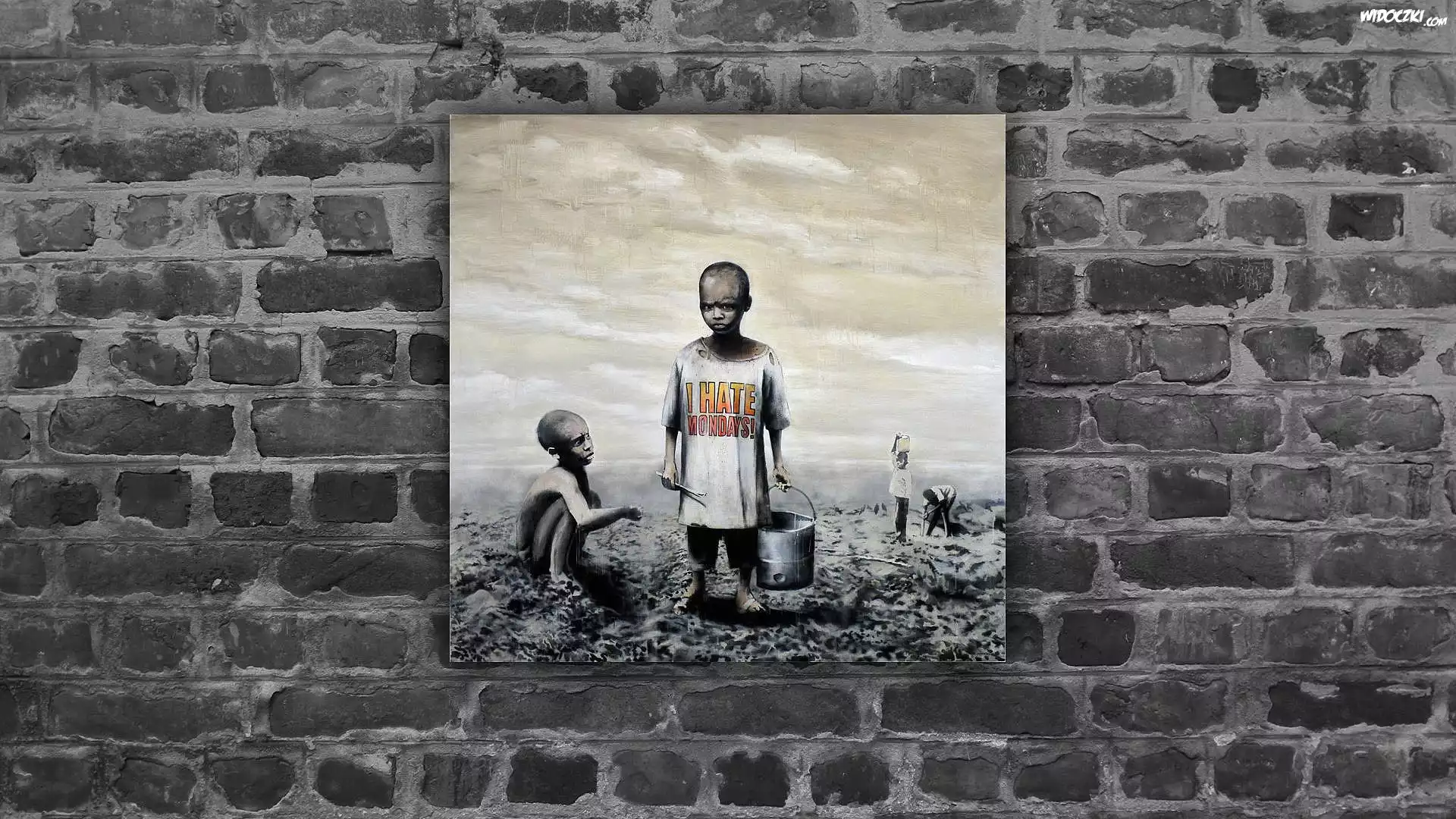 Mur, Rysunek, Plakat, Fotografia, Dzieci, Pola, Praca