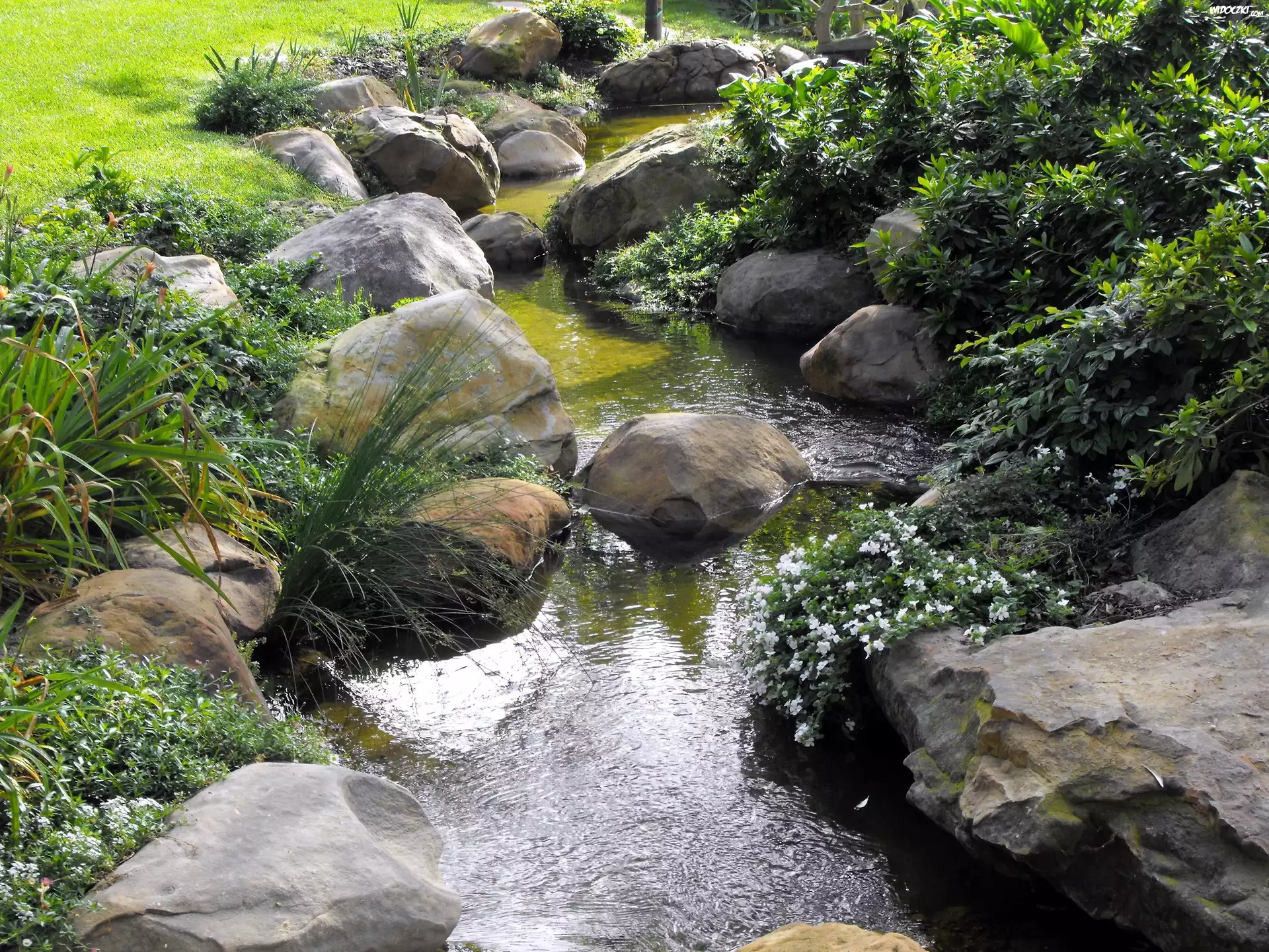 Zdjęcia, Łąka, Rzeczka, Kamienie