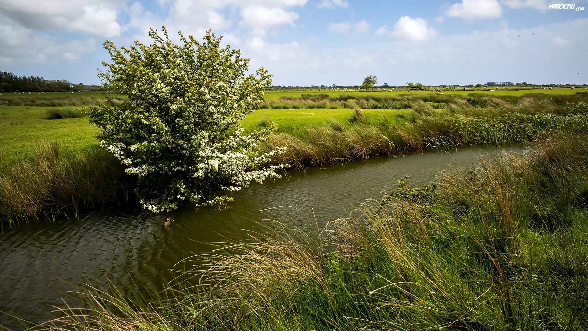 Zdjęcia, Łąki, Rzeczka, Drzewo