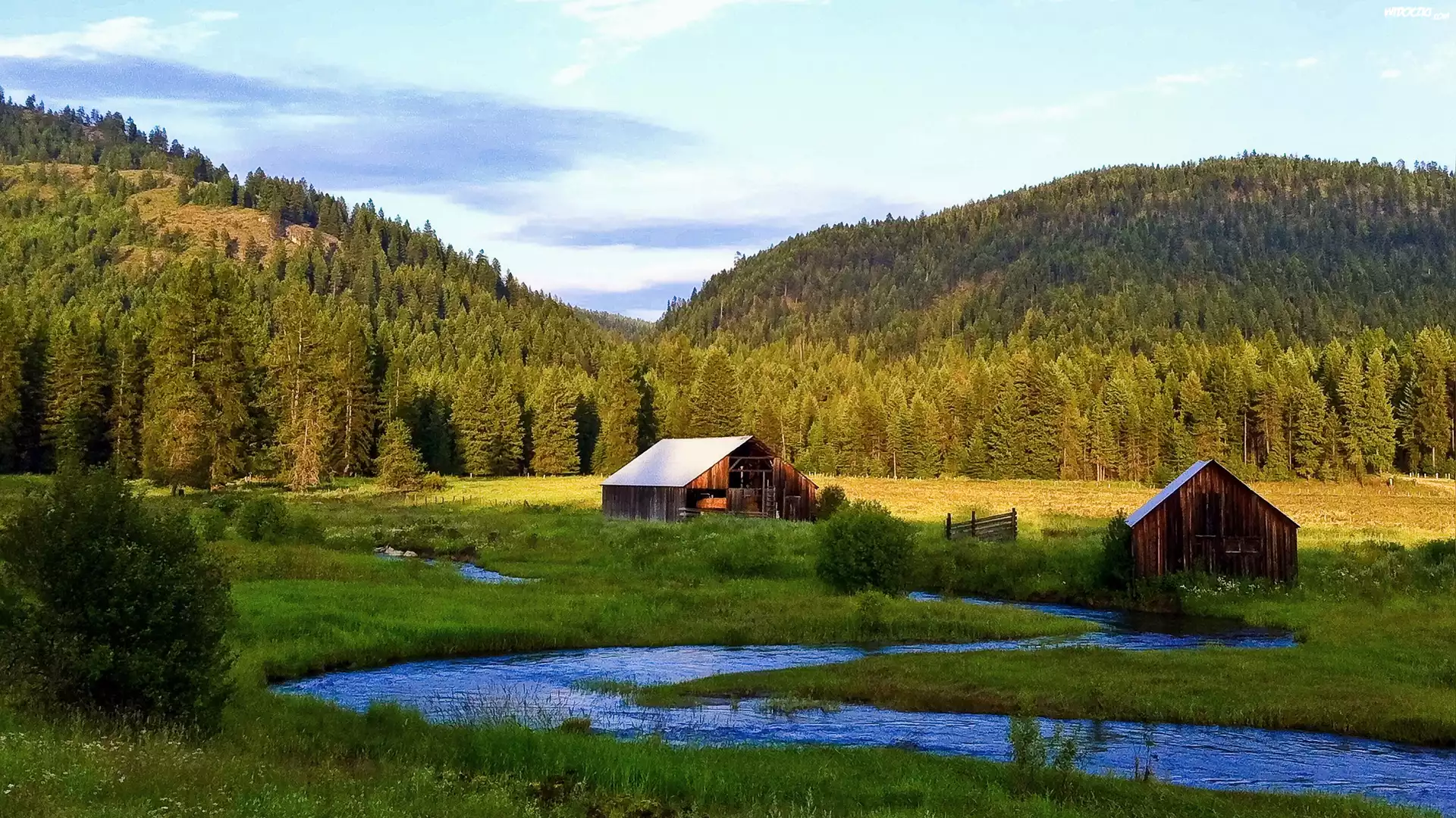 Zdjęcia, Rzeczka, Góry, Lasy, Łąki, Szopy