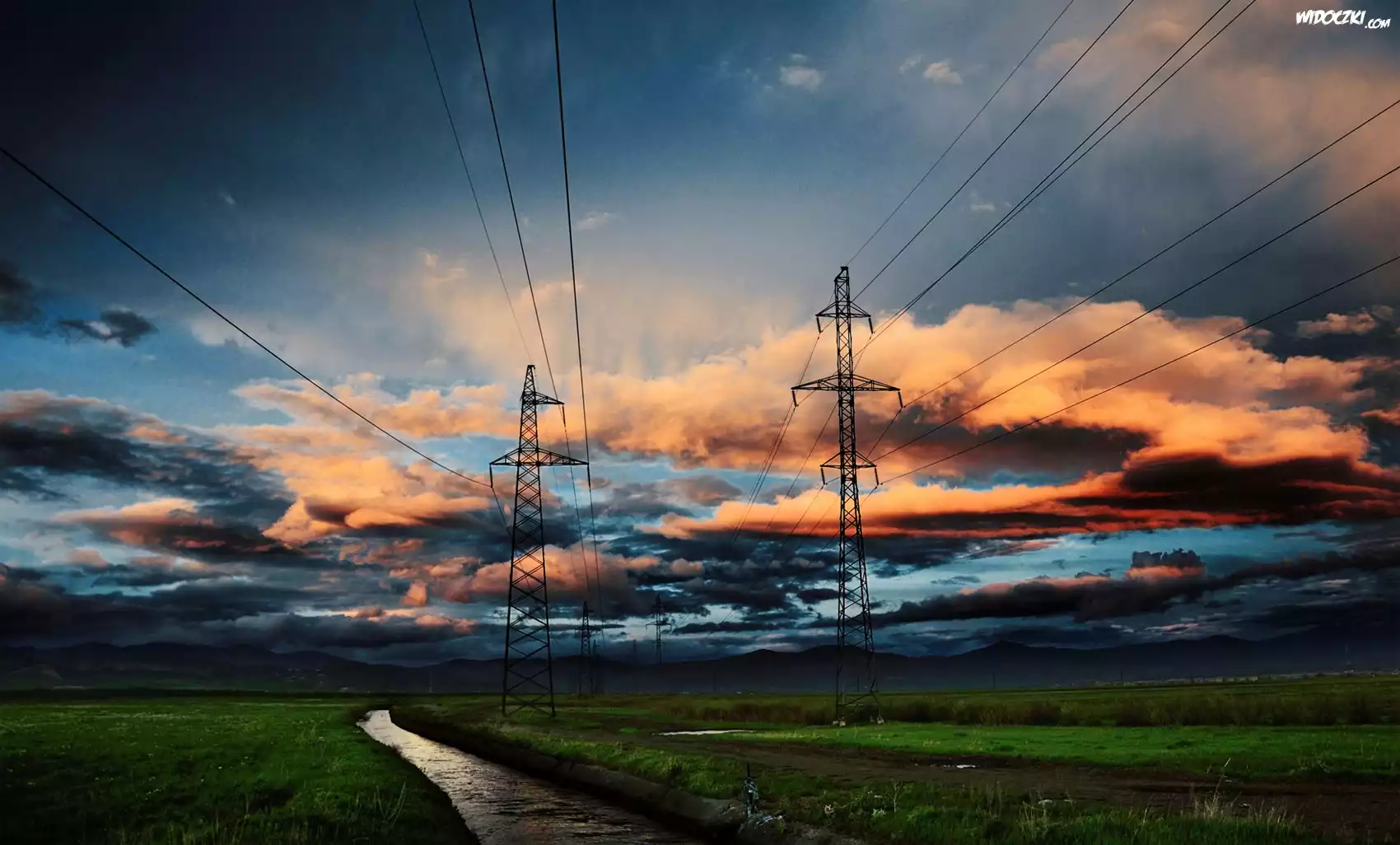 Zdjęcia, Chmury, Rzeczka, Słupy