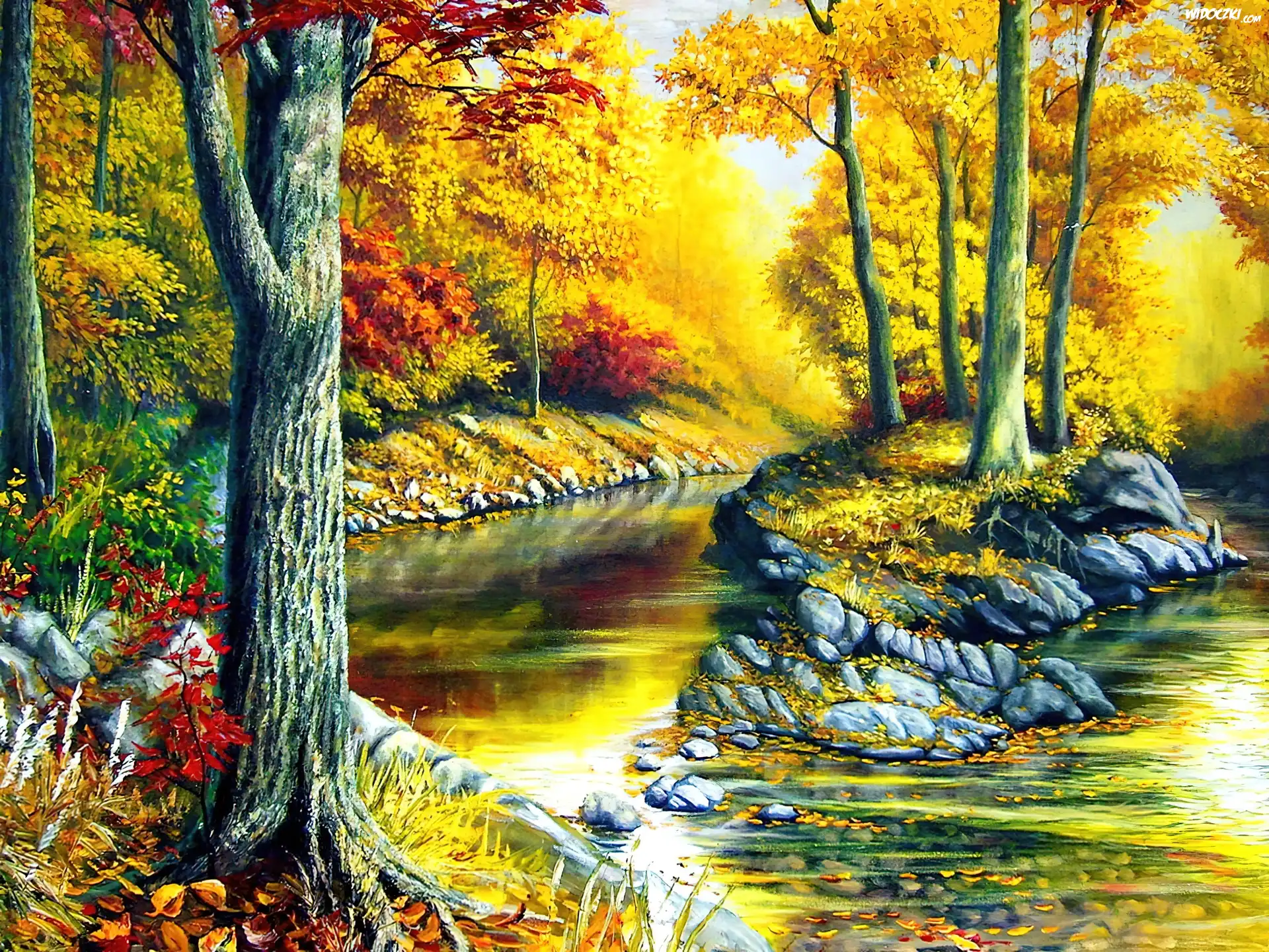 Zdjęcia, Jesień, Rzeczka, Drzewa