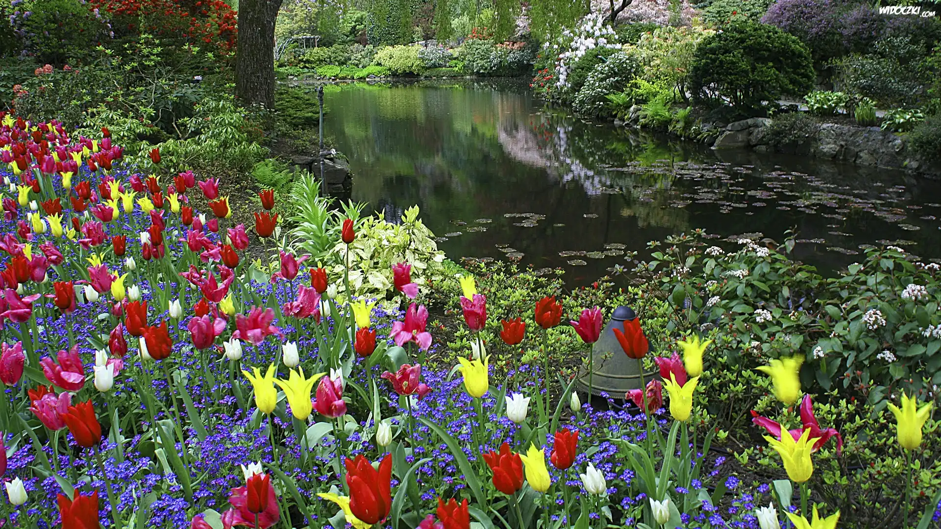 Zdj臋cia, Park, Rzeczka, Kwiaty