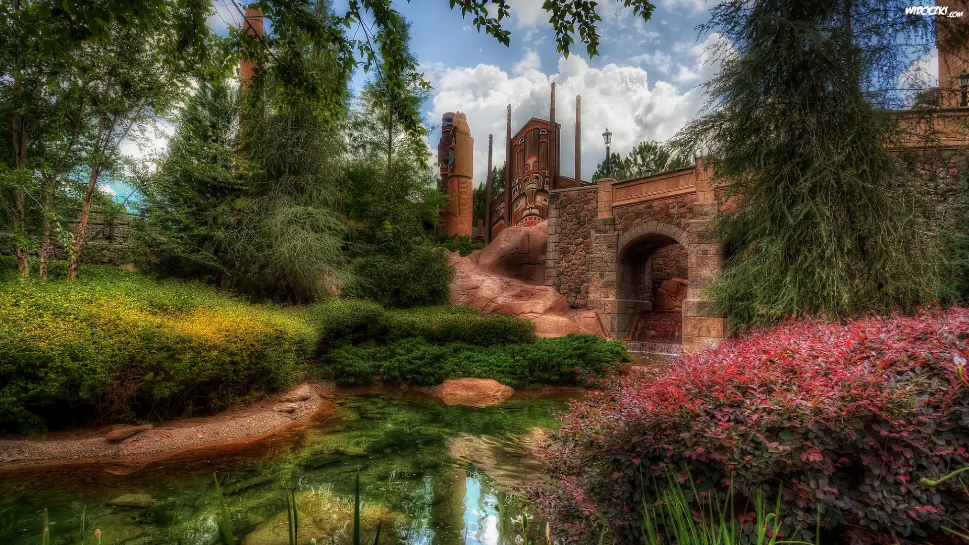 Zdjęcia, Rzeczka, Mur, Roślinność, Drzewa