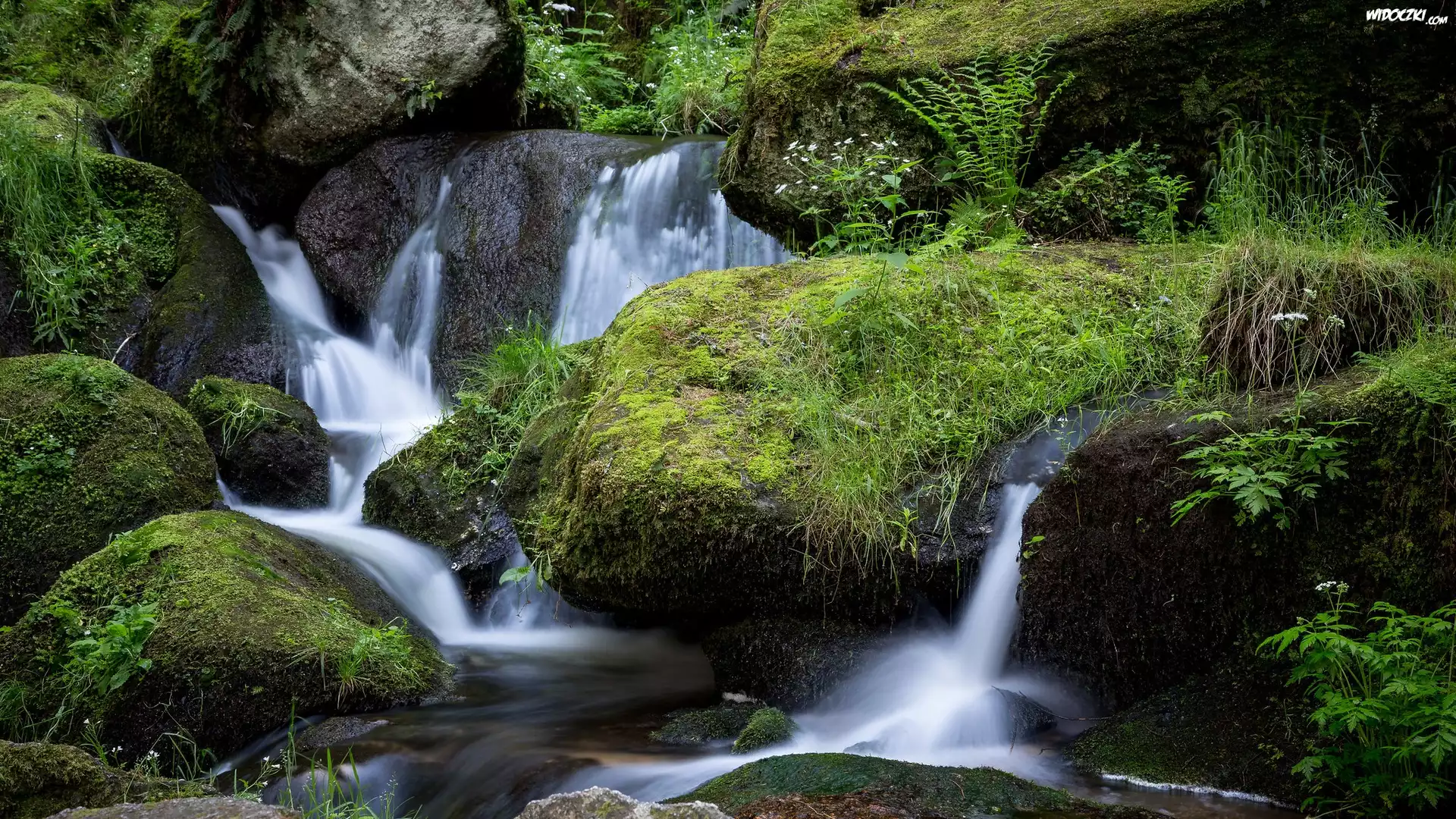 Zdjęcia, Strumień, Rzeczka, Omszałe, Skały, Głazy, Kamienie, Rośliny