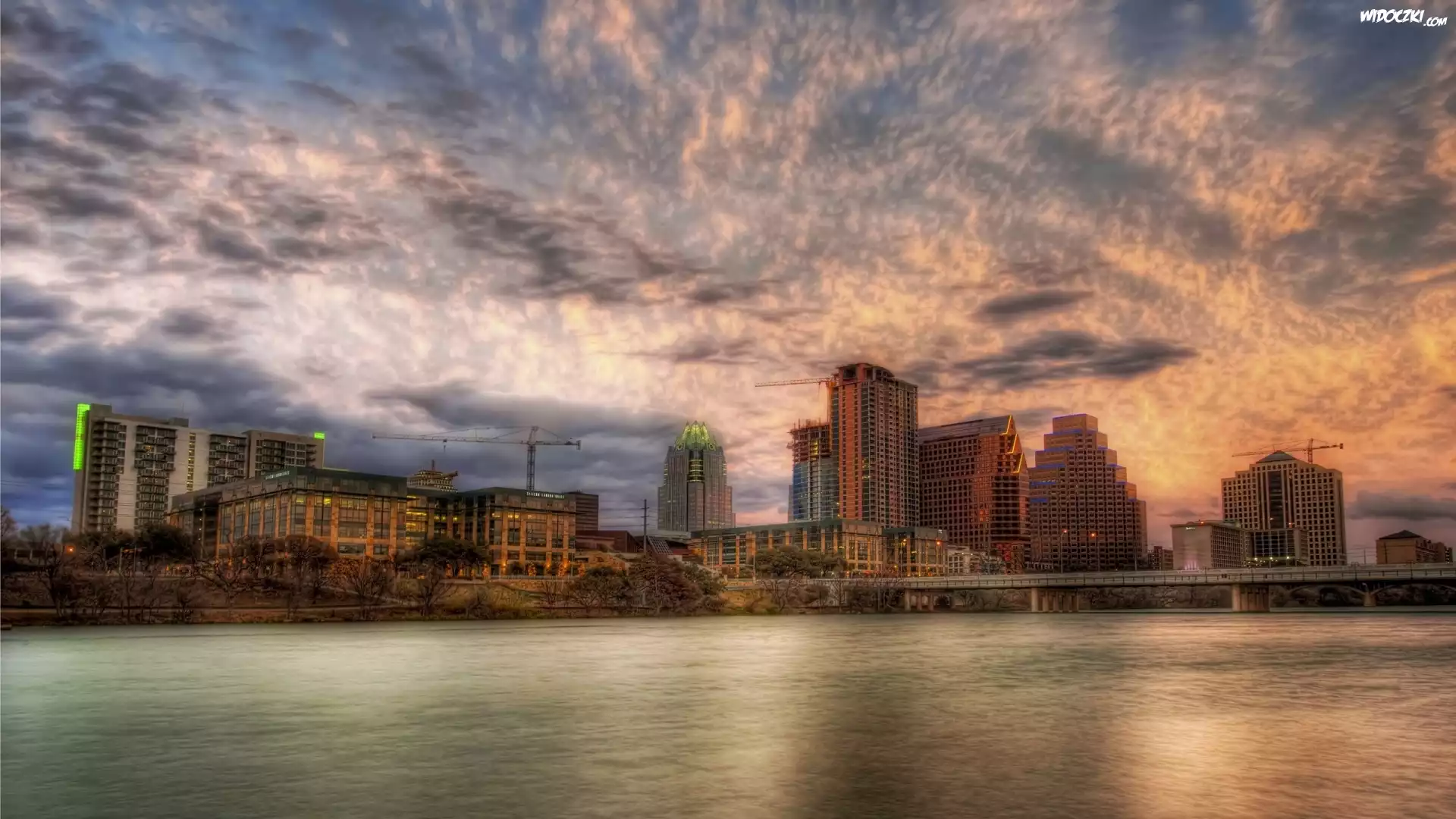 Rzeka, Chmury, Domy, Austin, Teksas