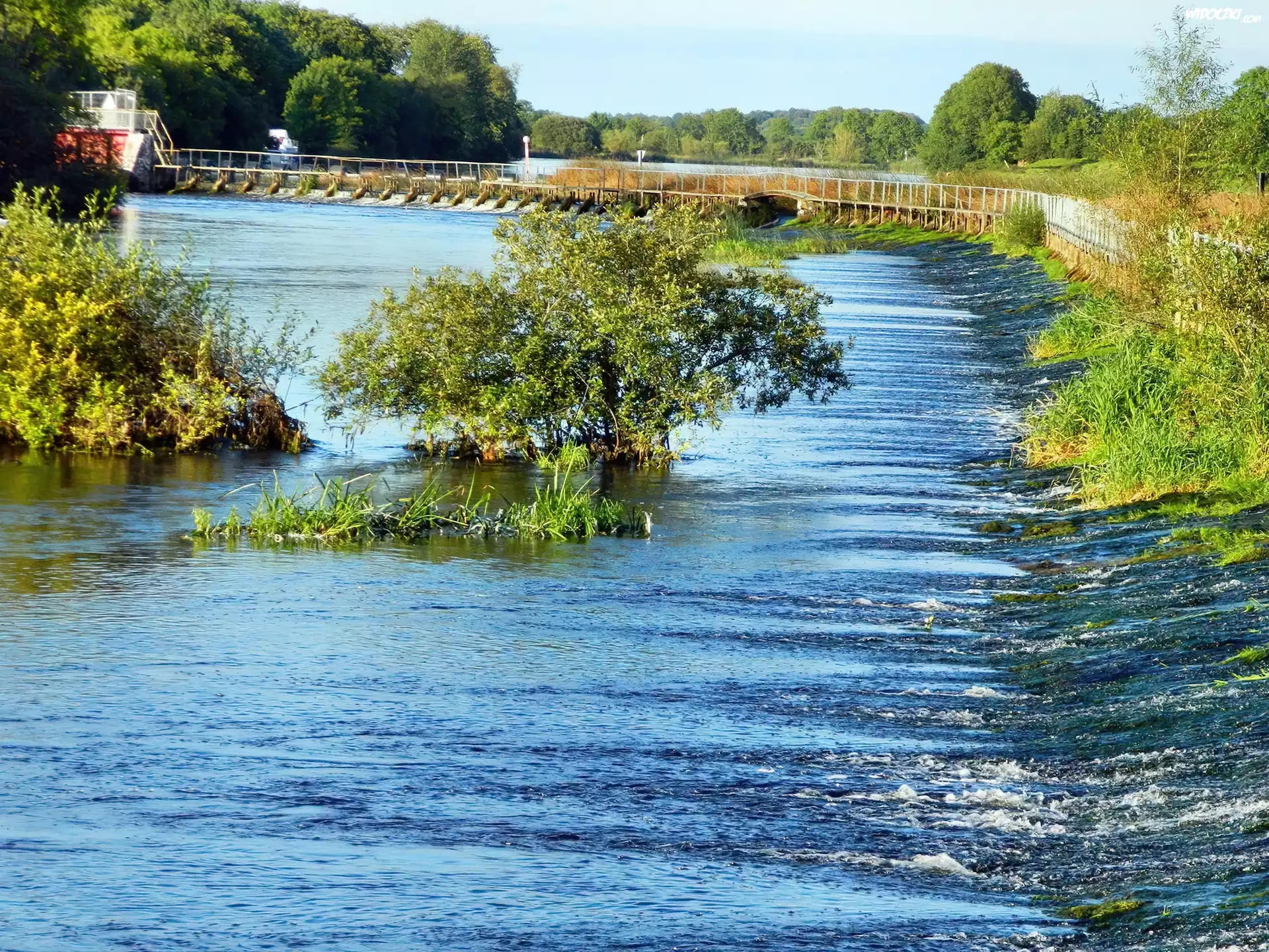 Zdjęcia, Rzeka, Drzewa, Brzeg, Kładka