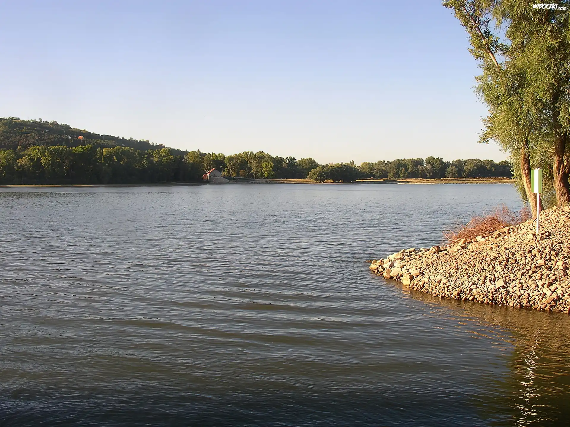 Rzeka, Dunaj, Zalesiony, Brzeg, Kamyczki
