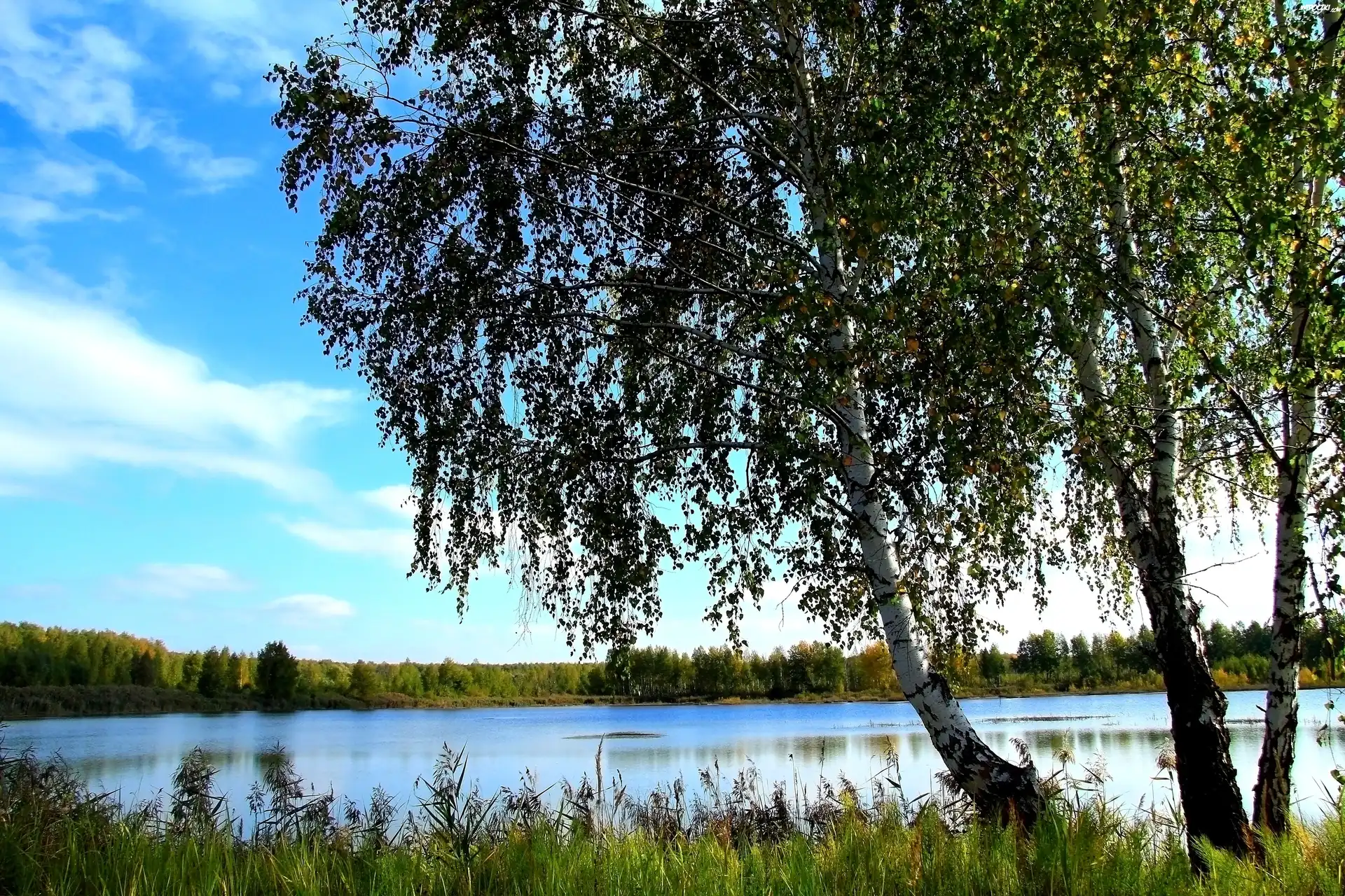 Zdjęcia, Rzeka, Las, Brzoza, Trawa