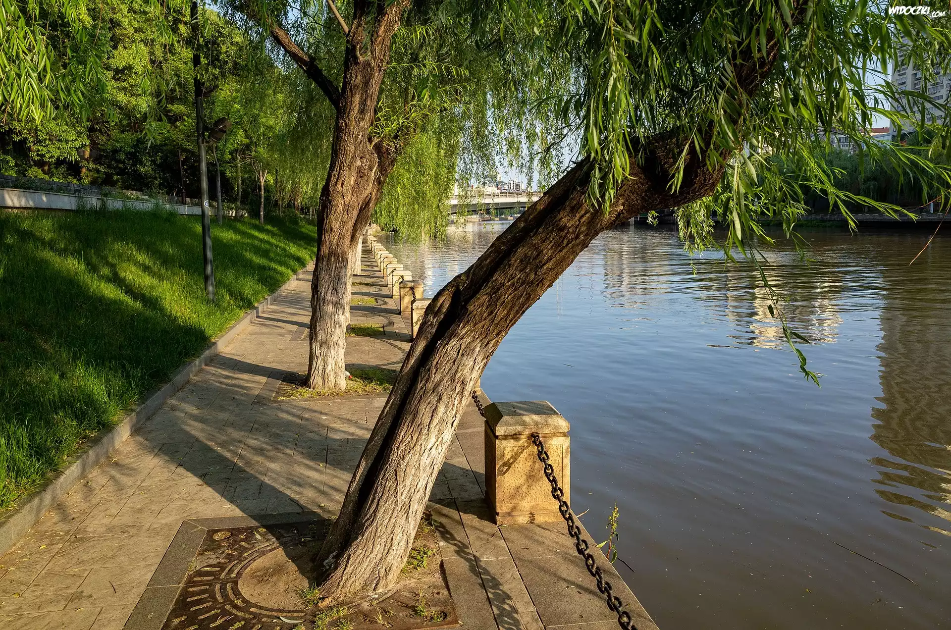 Zdj臋cia, Rzeka, Drzewa, Bulwar