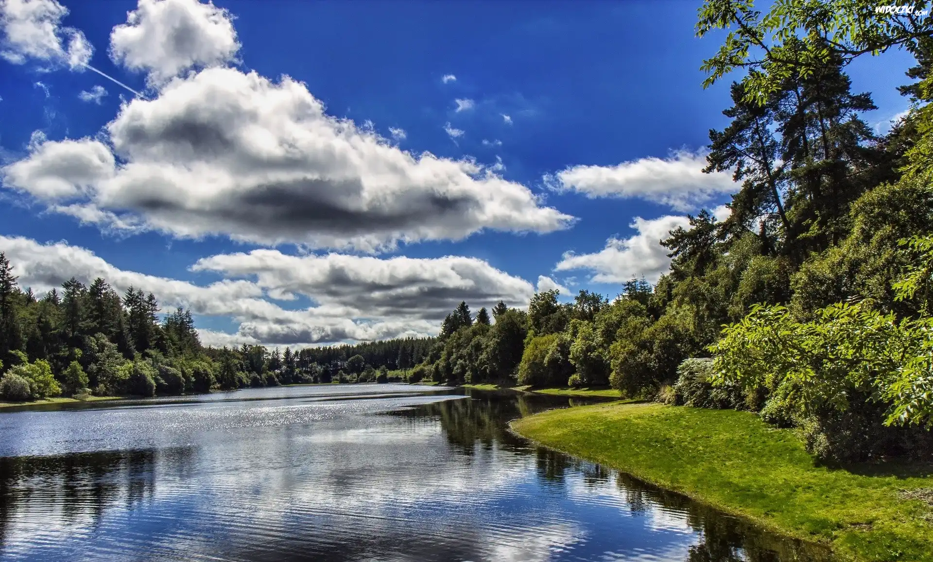 Zdj臋cia, Rzeka, Las, Chmury, Krajobraz