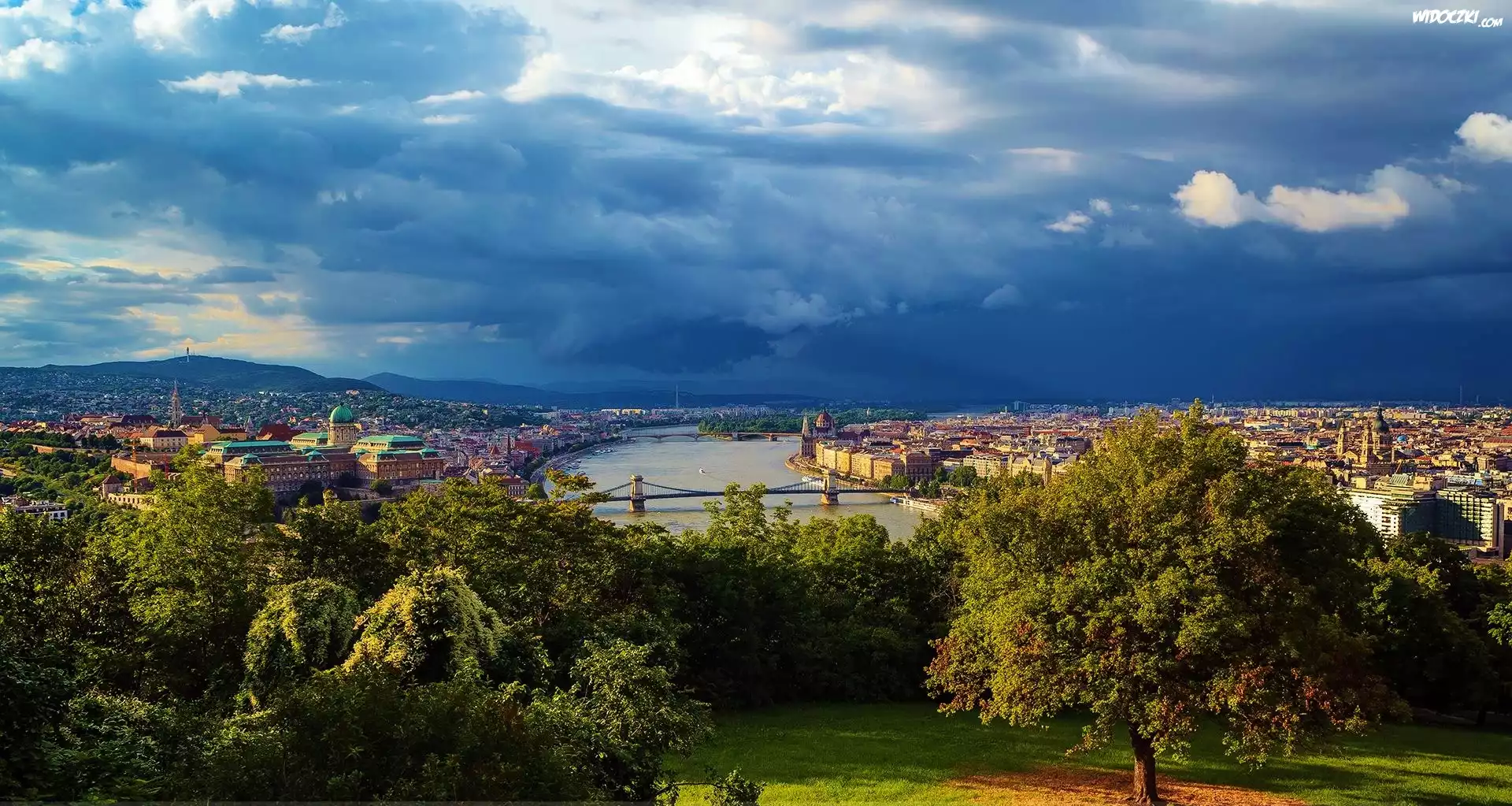 Zdjęcia, Rzeka, Niebo, Chmury, Drzewa
