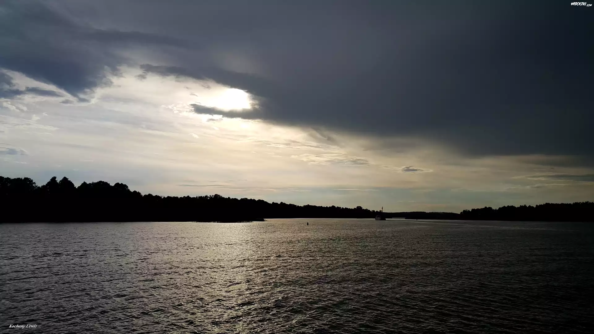 Rzeka, Niebo, Chmury, Słońce