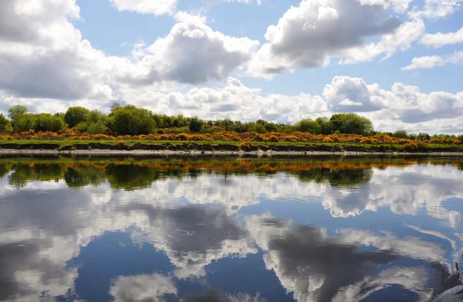 Zdjęcia, Chmury, Rzeka, Odbicie