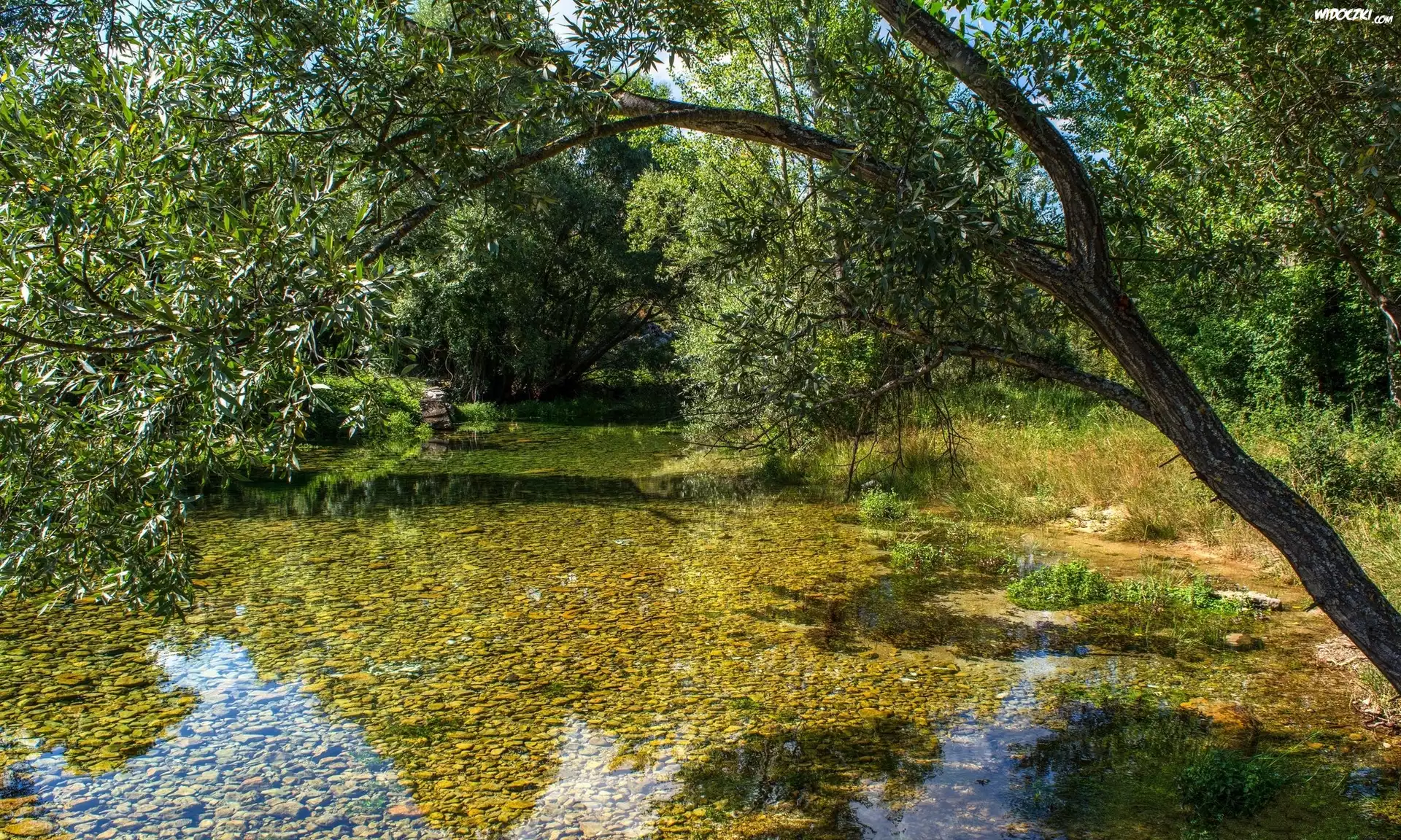 Zdj臋cia, Chorwacja, Rzeka Cetina, Drzewa, Pochylone, Drzewo, Kamienie