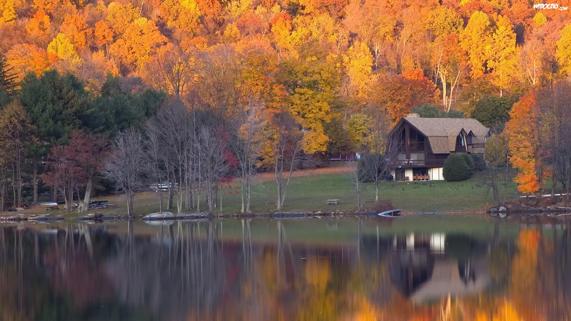 Zdjęcia, Rzeka, Lasy, Dom, Jesień