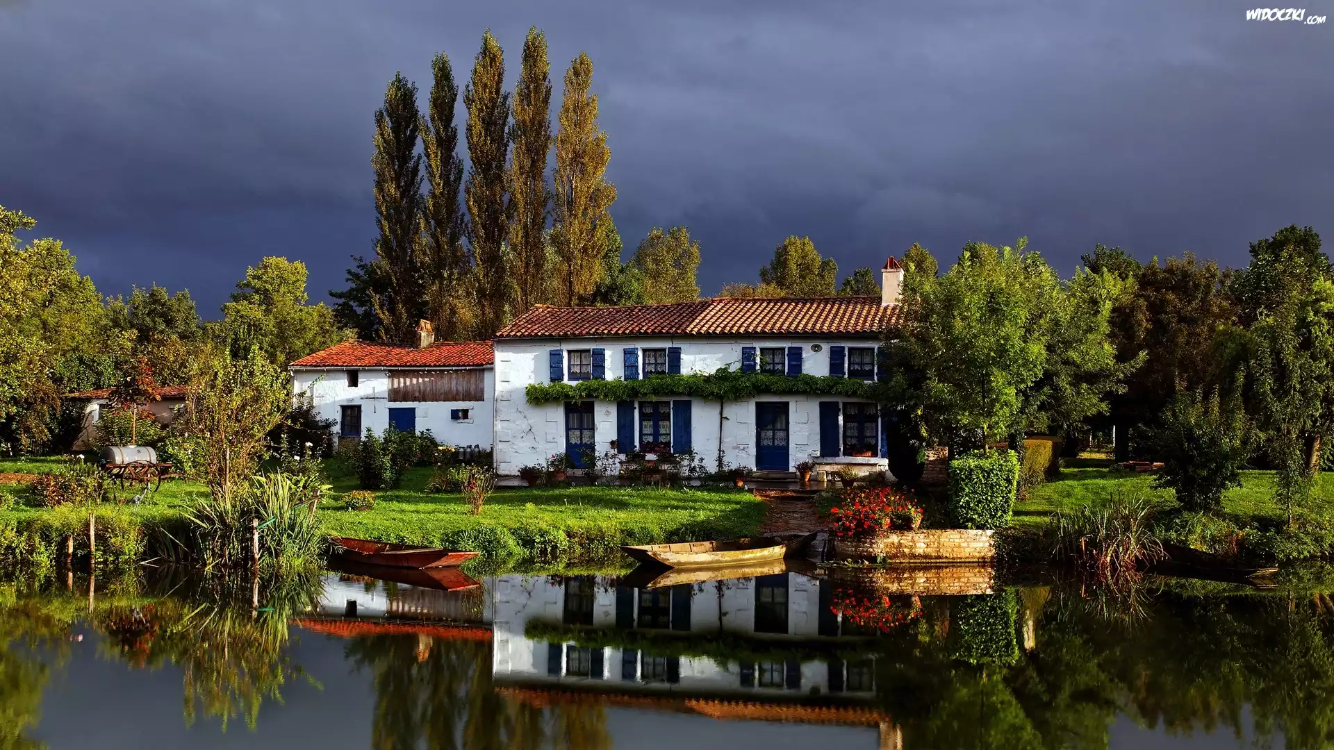 Zdjęcia, Rzeka, Łodzie, Domek, Drzewa