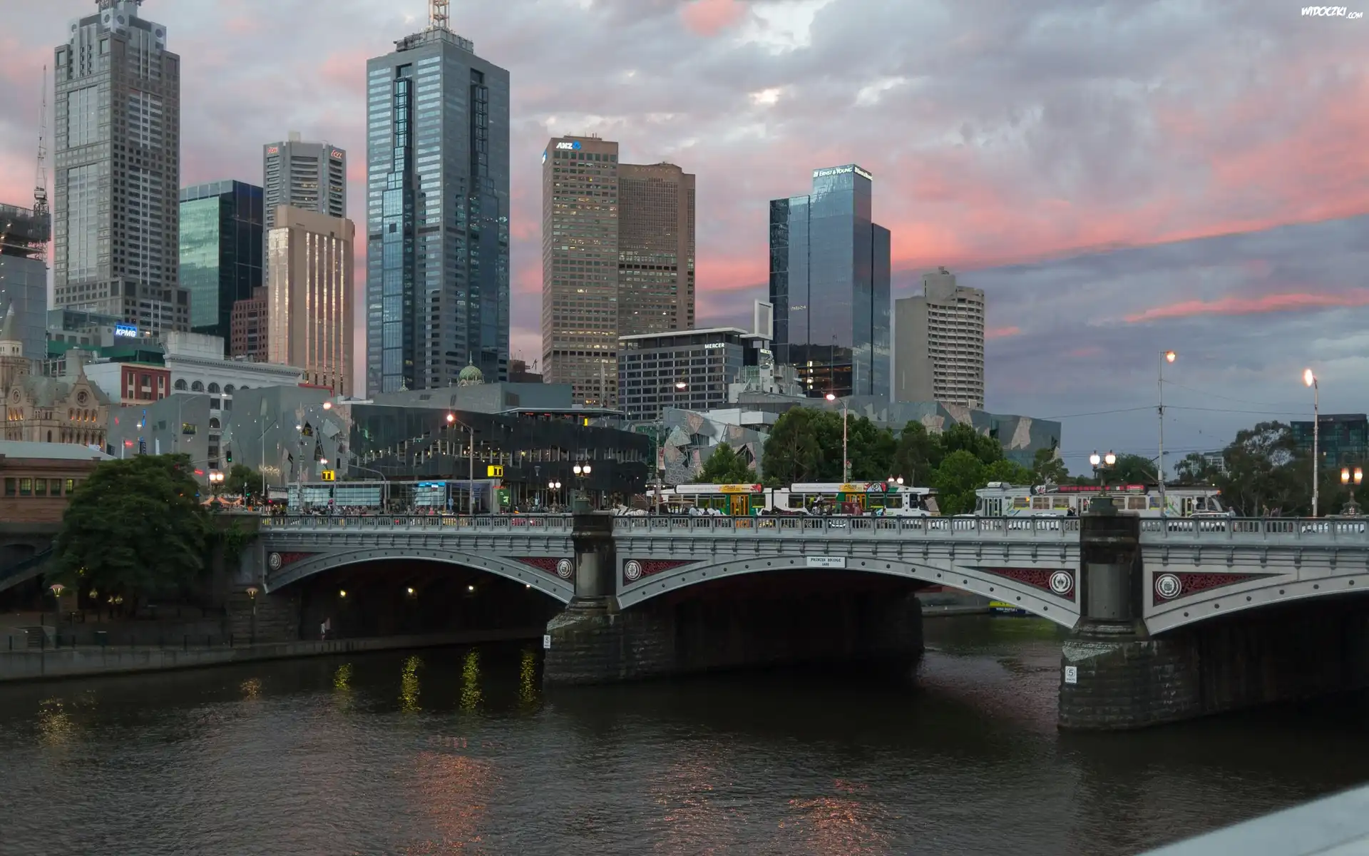 Zdjęcia, Rzeka, Most, Drapacze, Chmur