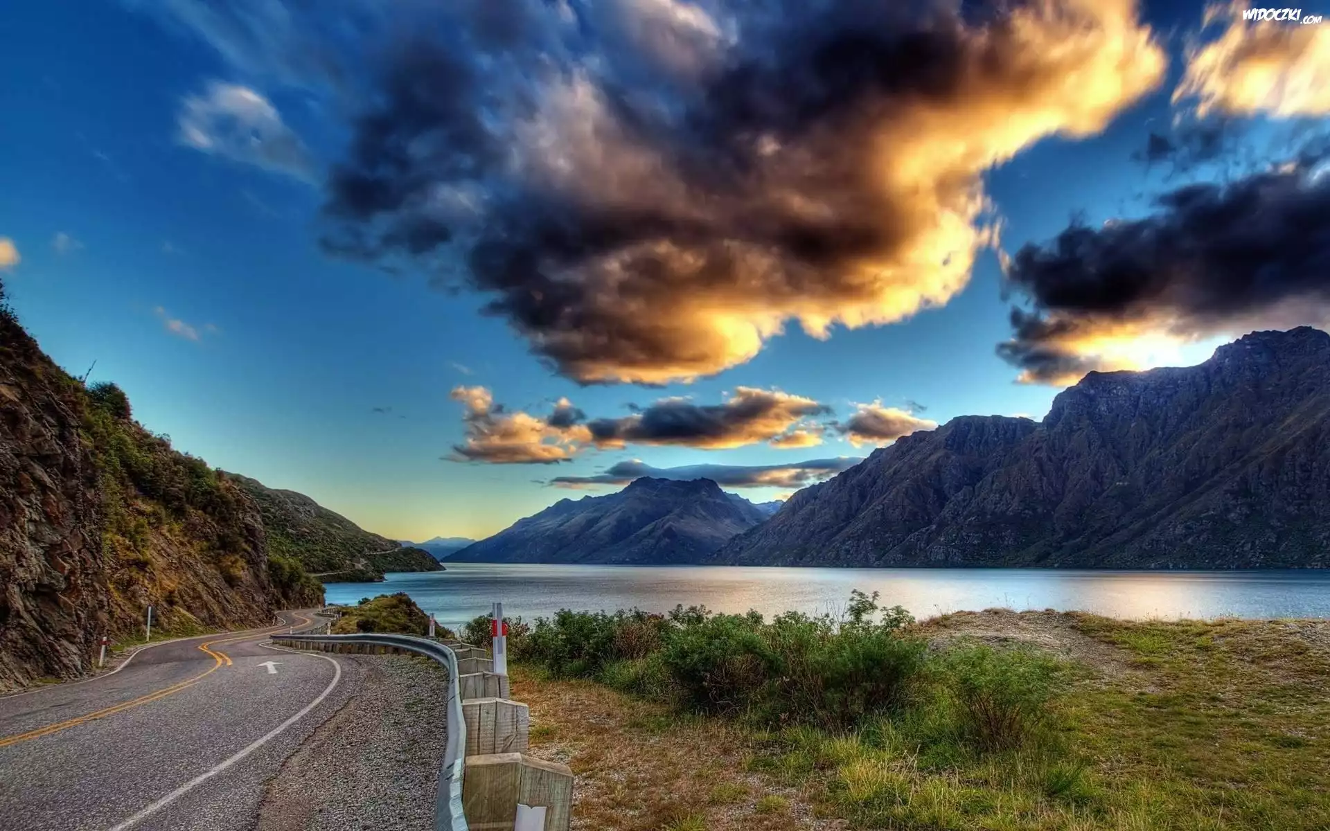 Zdjęcia, Rzeka, Góry, Droga, Chmury