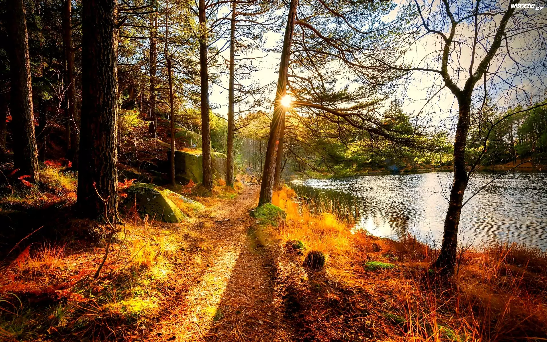 Zdjęcia, Rzeka, Droga, Drzewa, Jesień