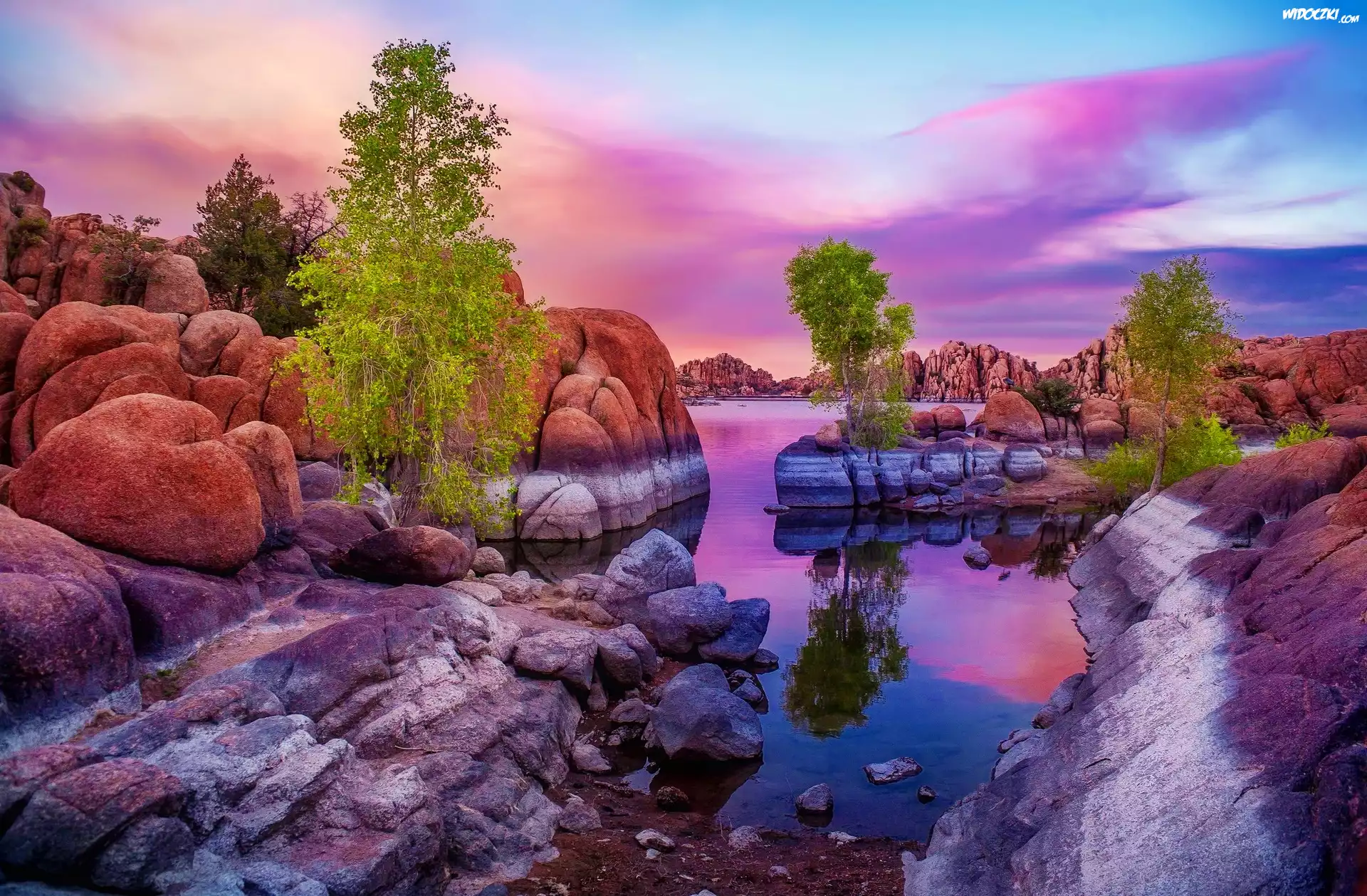 Zdjęcia, Rzeka, Głazy, Drzewa, Wiosna