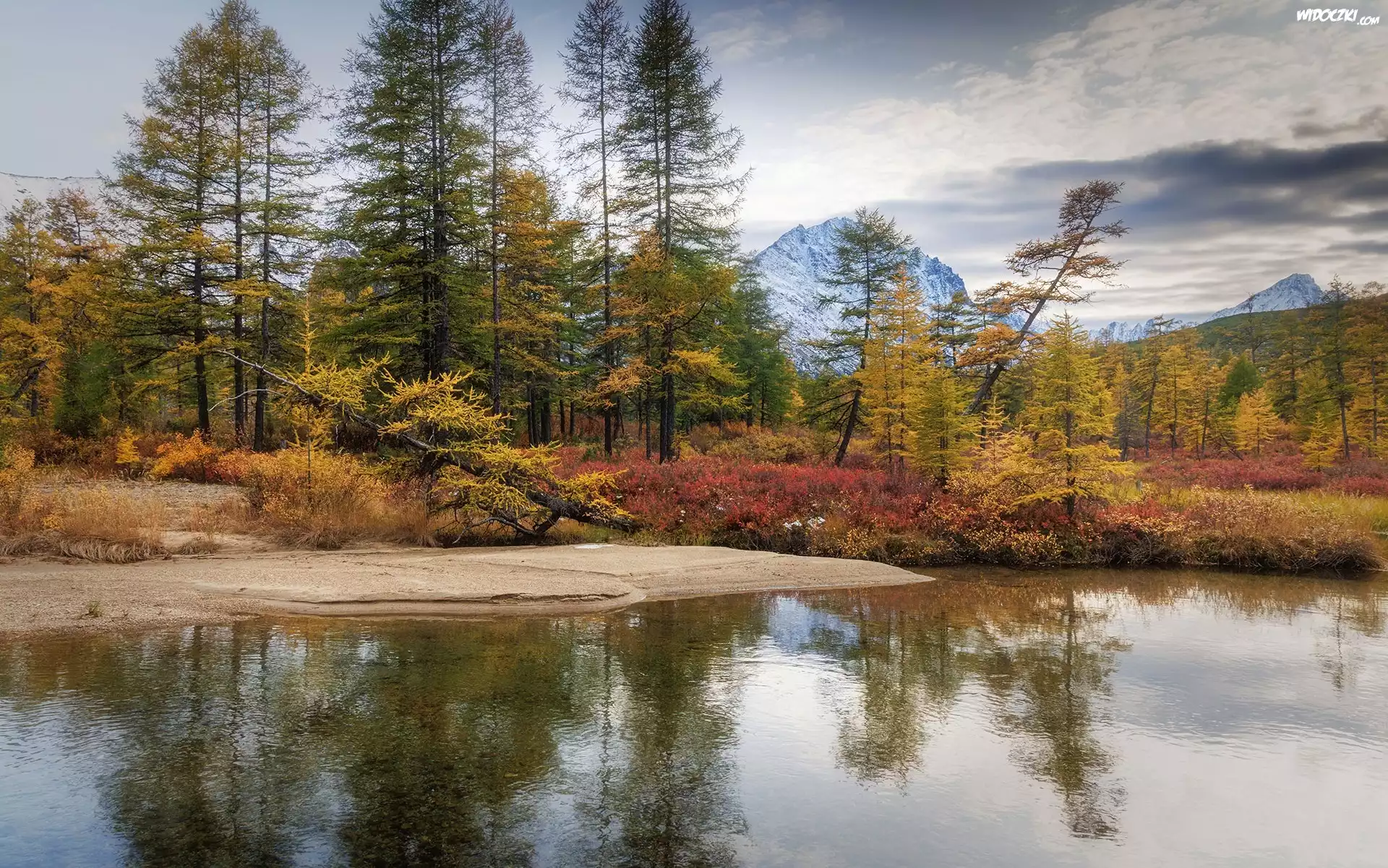 Zdjęcia, Góry, Rzeka, Drzewa, Roślinność, Jesień