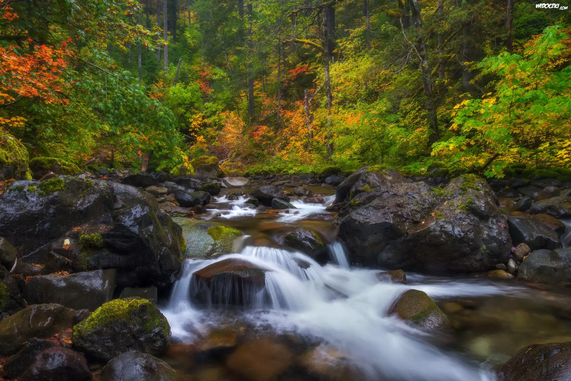 Zdjęcia, Rzeka, Potok, Kamienie, Głazy, Drzewa, Las