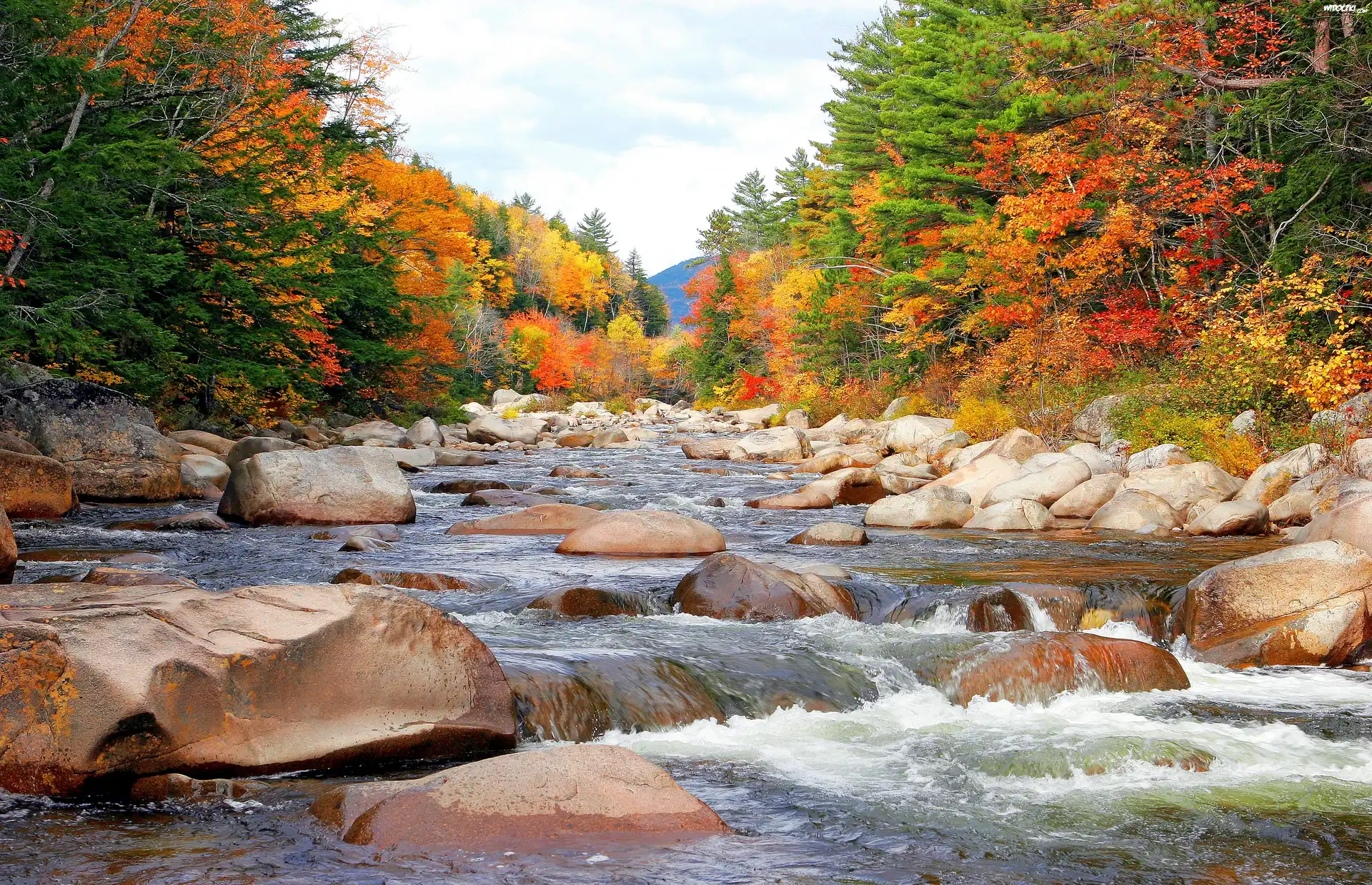 Zdjęcia, Rzeka, Kamienie, Drzewa, Jesień