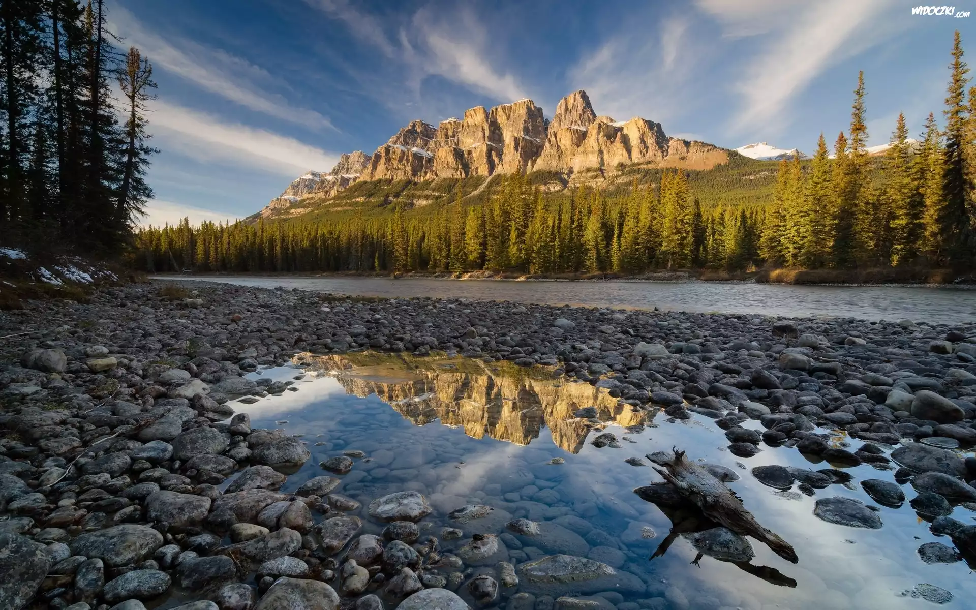 Rzeka, Las, Kamienie, Drzewa, Góry