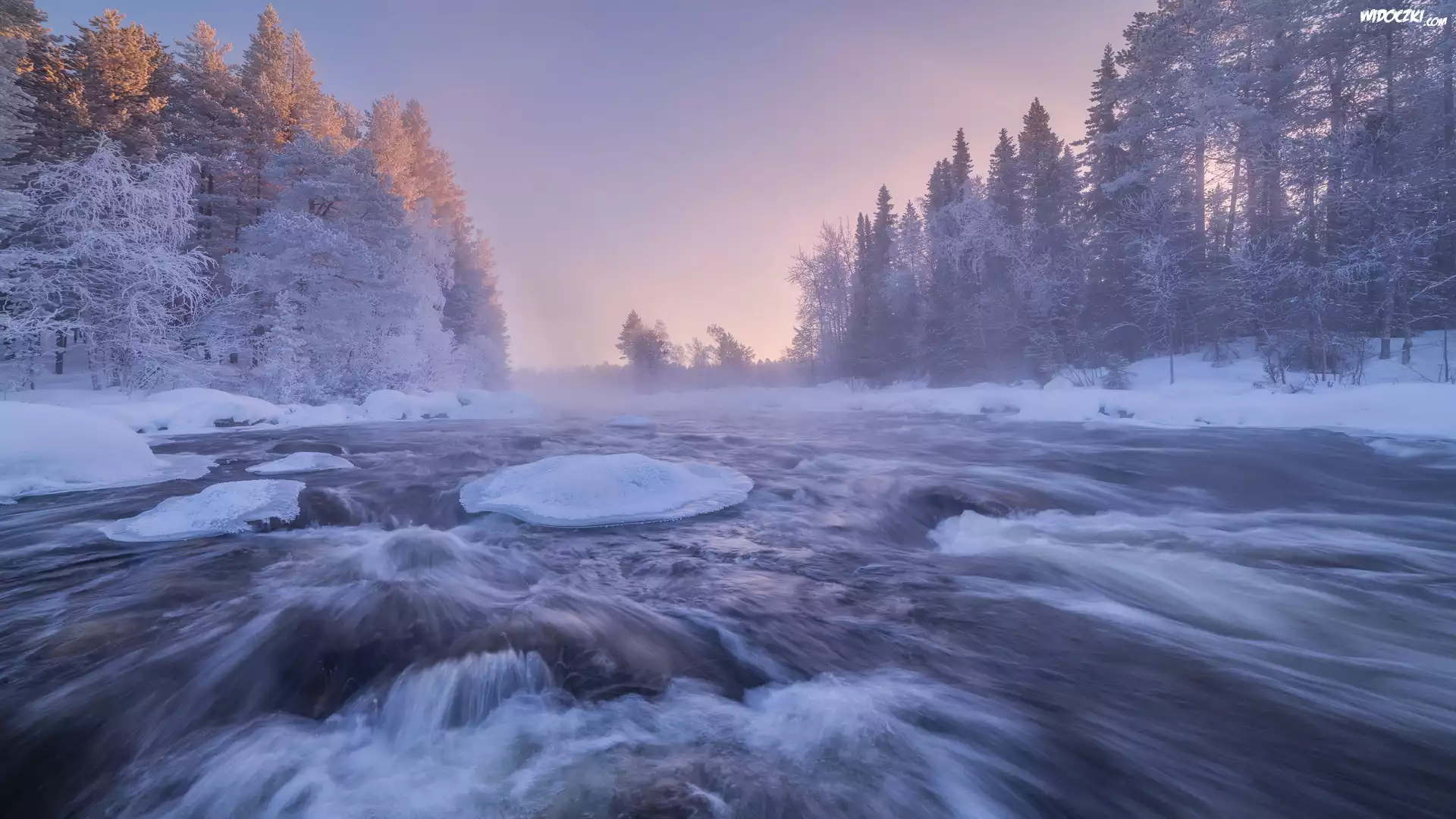 Zdjęcia, Drzewa, Zima, Las, Rzeka