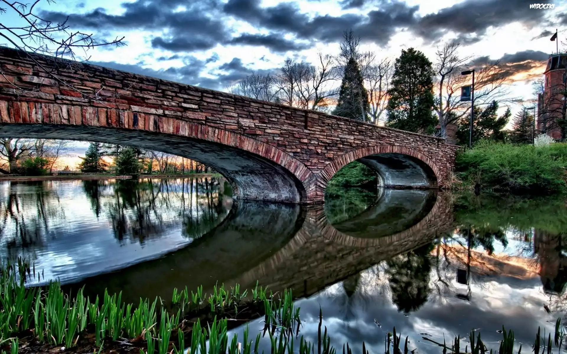 Zdjęcia, Rzeka, Most, Drzewa, Chmury