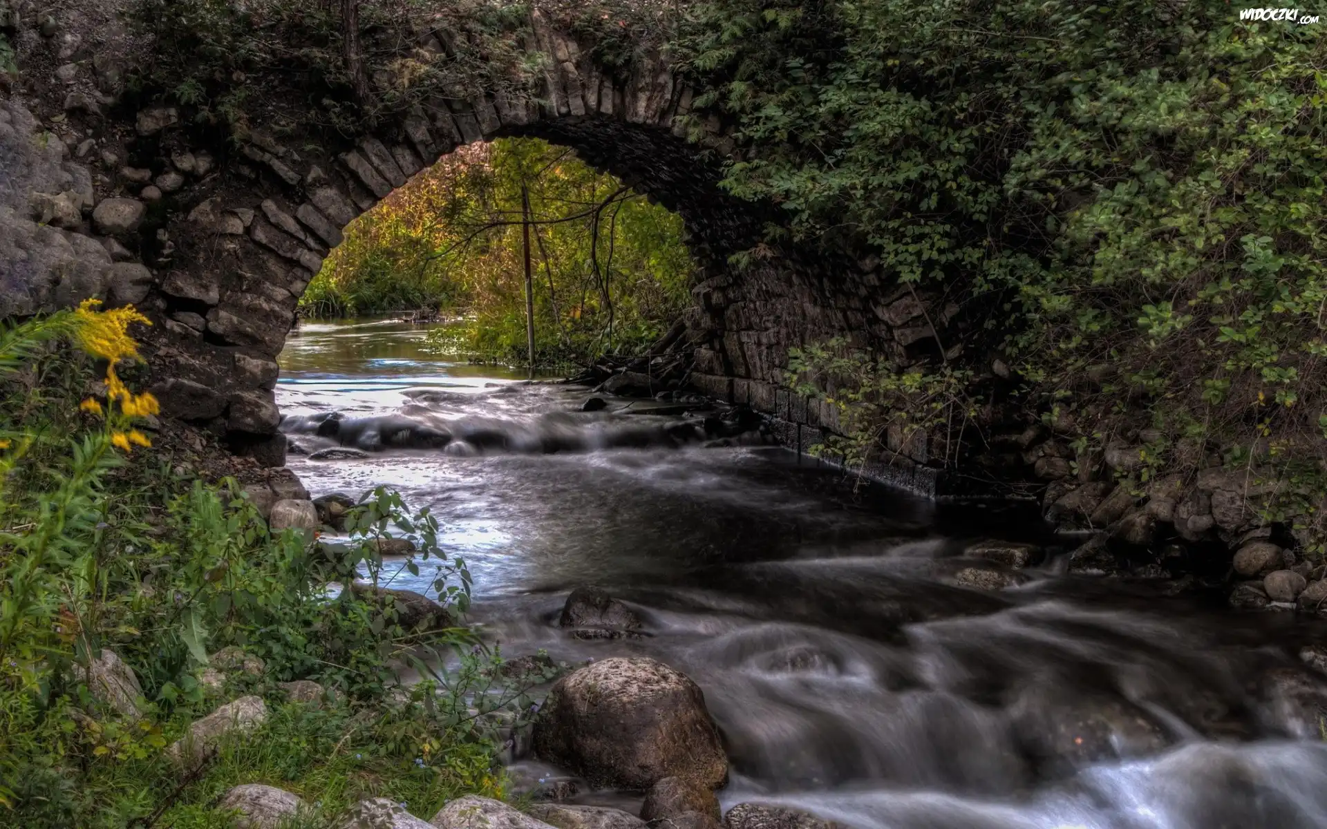 Zdj臋cia, Rzeka, Most, Drzewa, Kamienie