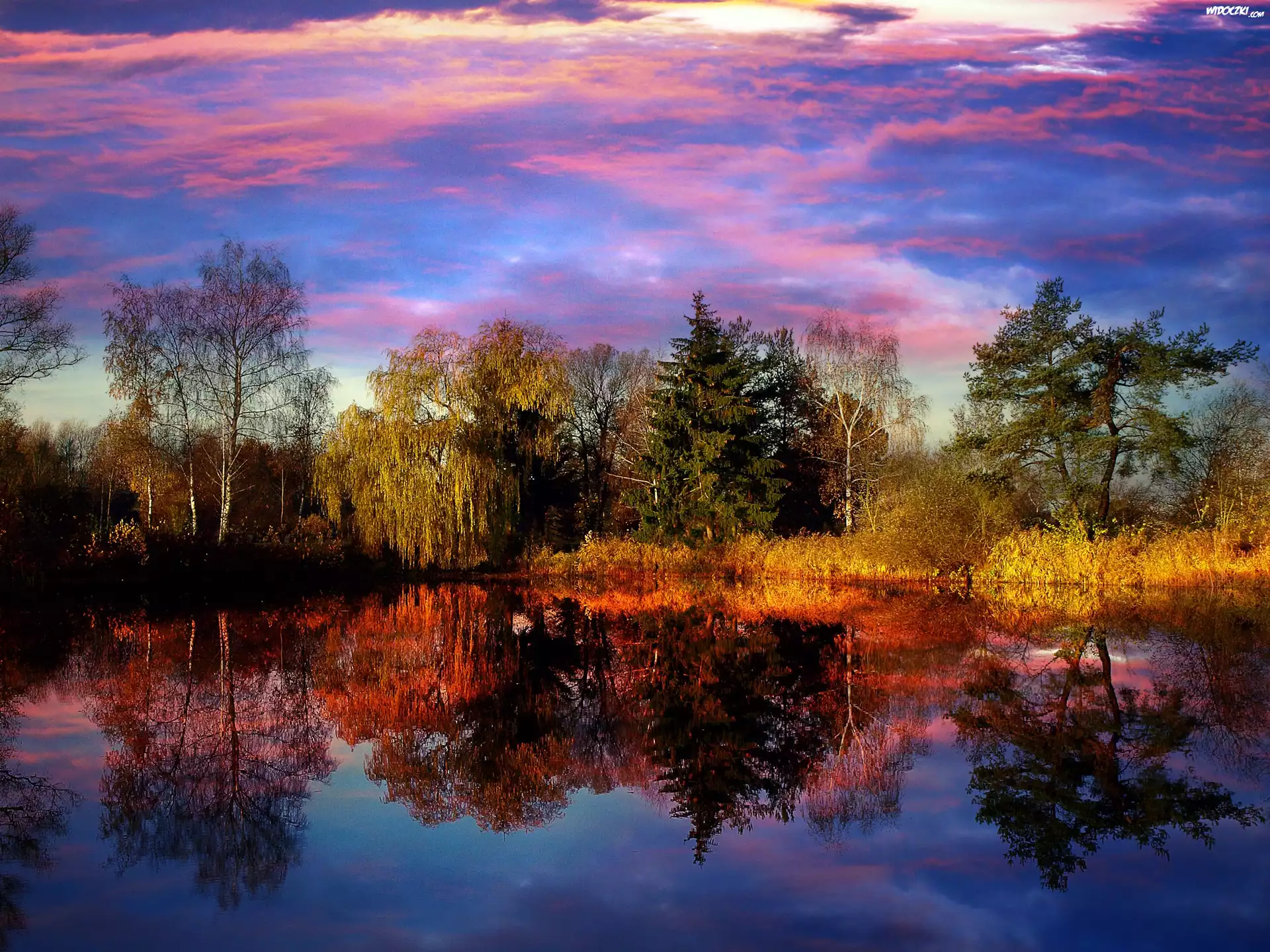 Zdjęcia, Drzewa, Rzeka, Odbicie