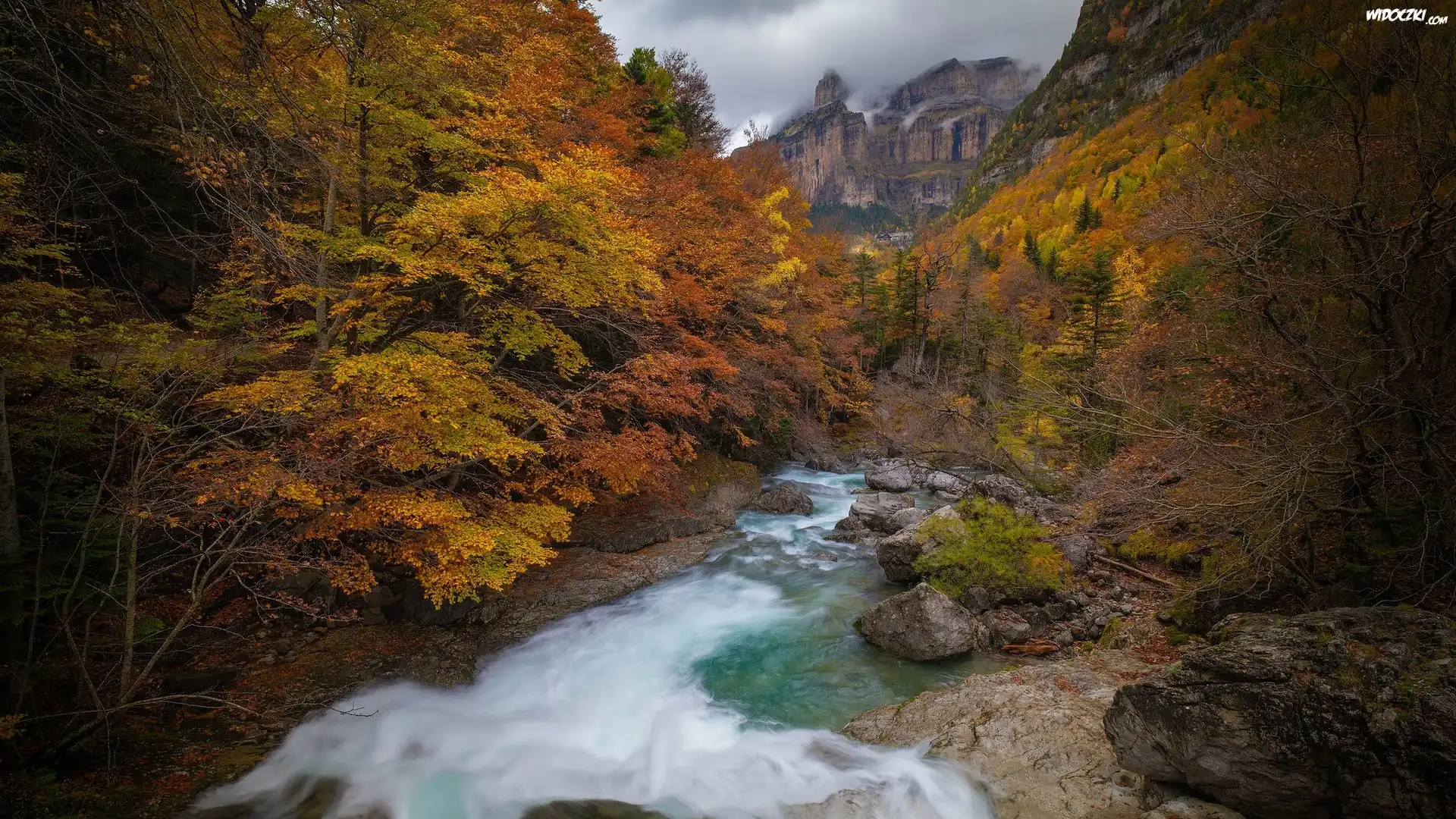Zdjęcia, Jesień, Góry, Skały, Rzeka, Las, Drzewa