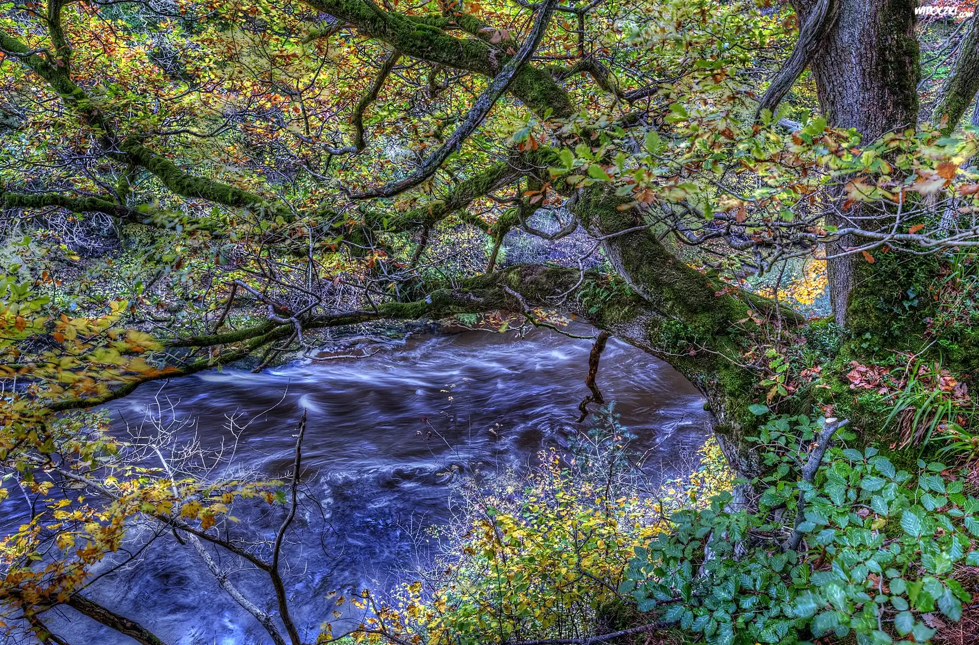 Zdjęcia, Rzeka, Las, Pochylone Drzewo, Jesień