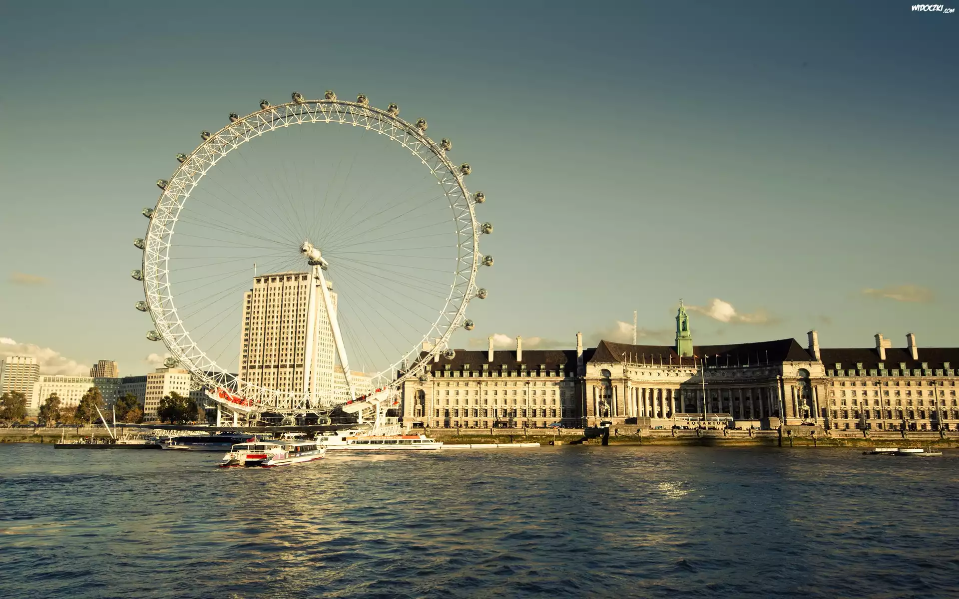 Zdjęcia, Rzeka, Tamiza, London Eye, Anglia