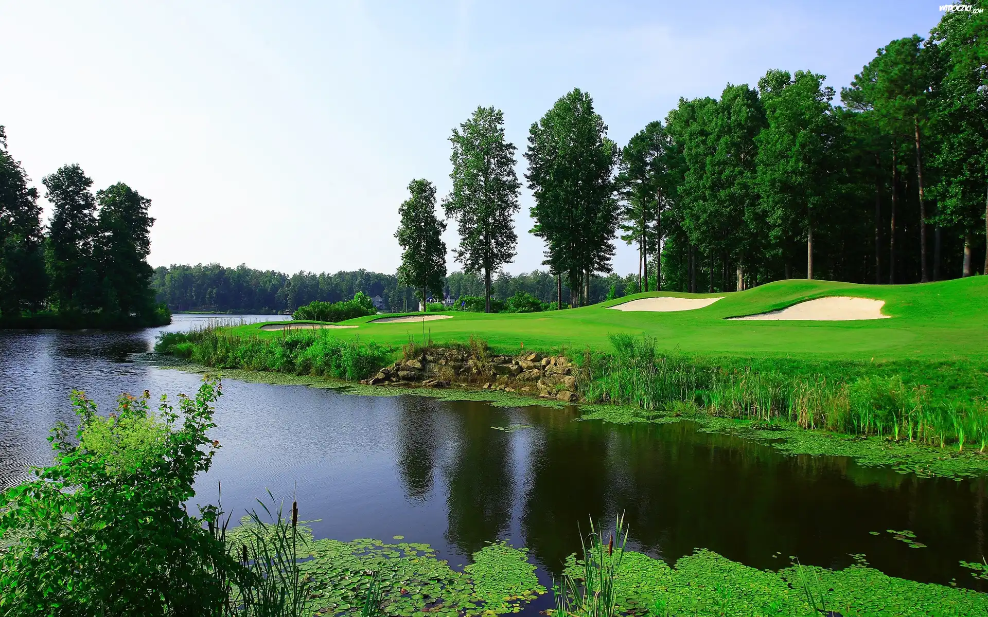 Zdj臋cia, Rzeka, Lasy, Krzewy, Pola, Golfowe, Lato