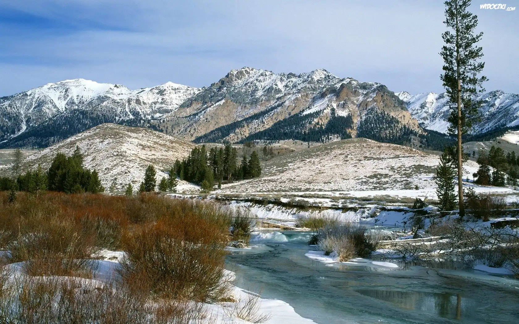 Zima, Rzeka, Domy, Odbicie, Lustrzane Pokrywa, Śnieżna, Zima Góra Góra Góra, Rzeki Góra, Zima Rzeka, Drzewa, HDR Wodospad Góry, Rzeki Góra, Jeziora, Wisona Ławki, Śnieg, Drzewa, Most, Światła, Noc Rzeka, Widok, Z, Góry Góra Góra, Niebo, Księżyc Góra
