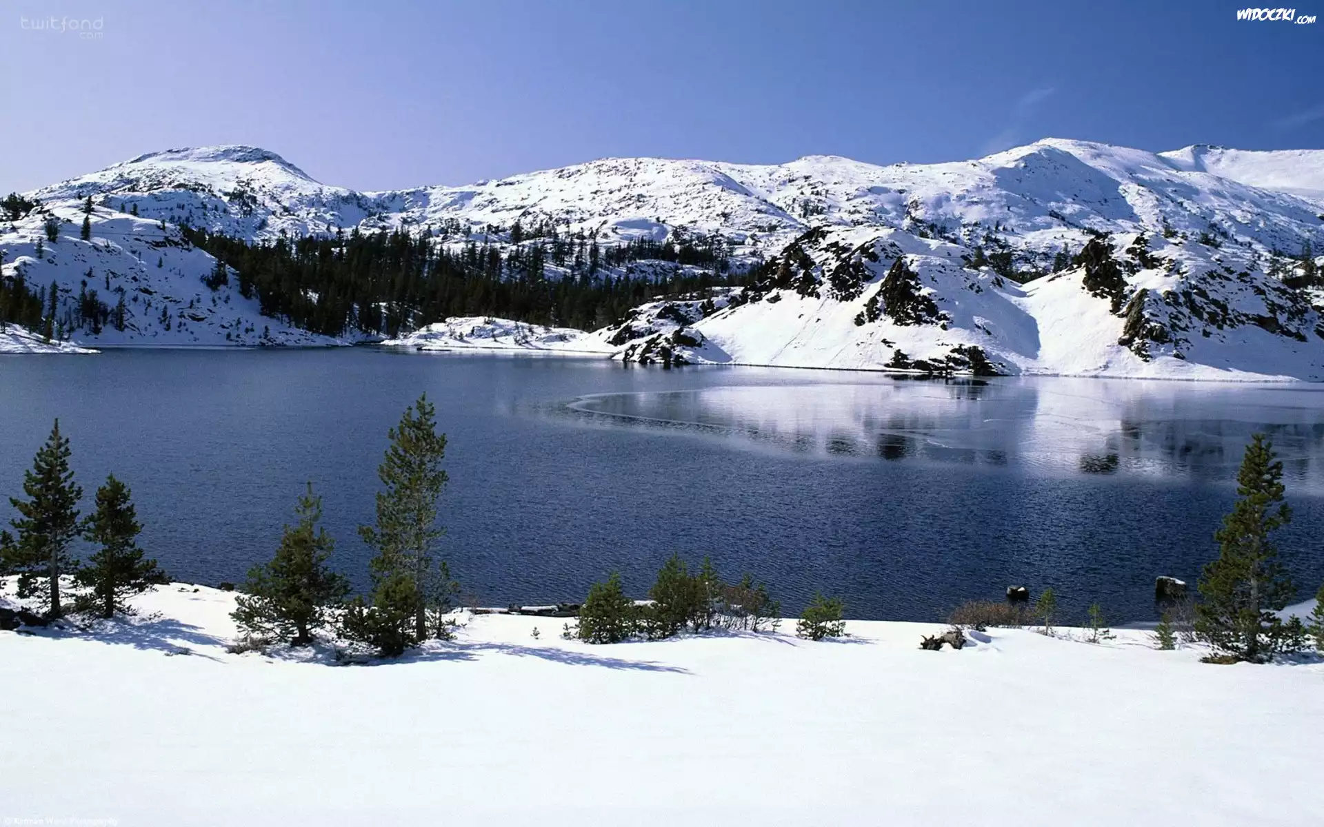 Zdjęcia, Rzeka, Drzewa, Góry, Zima