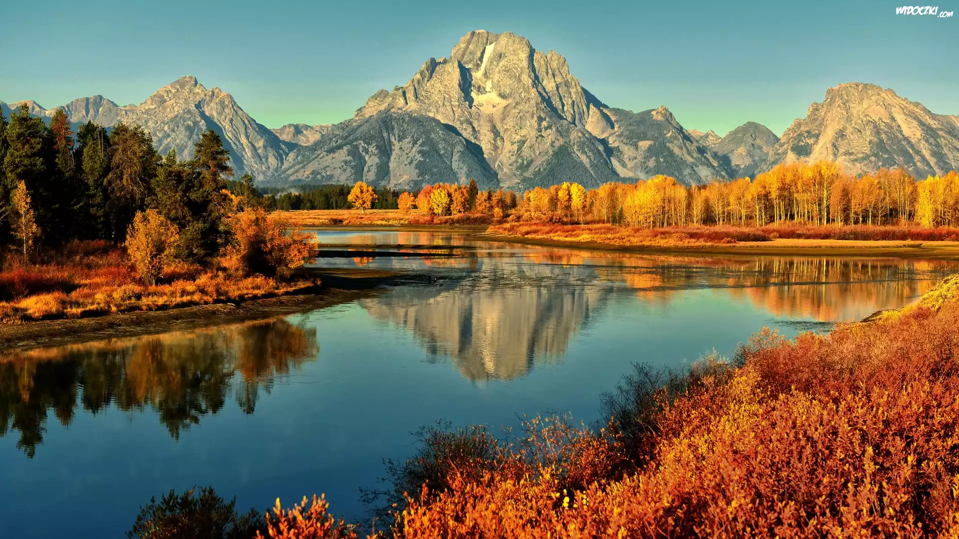 Rzeka, Las, Góry, Jesień