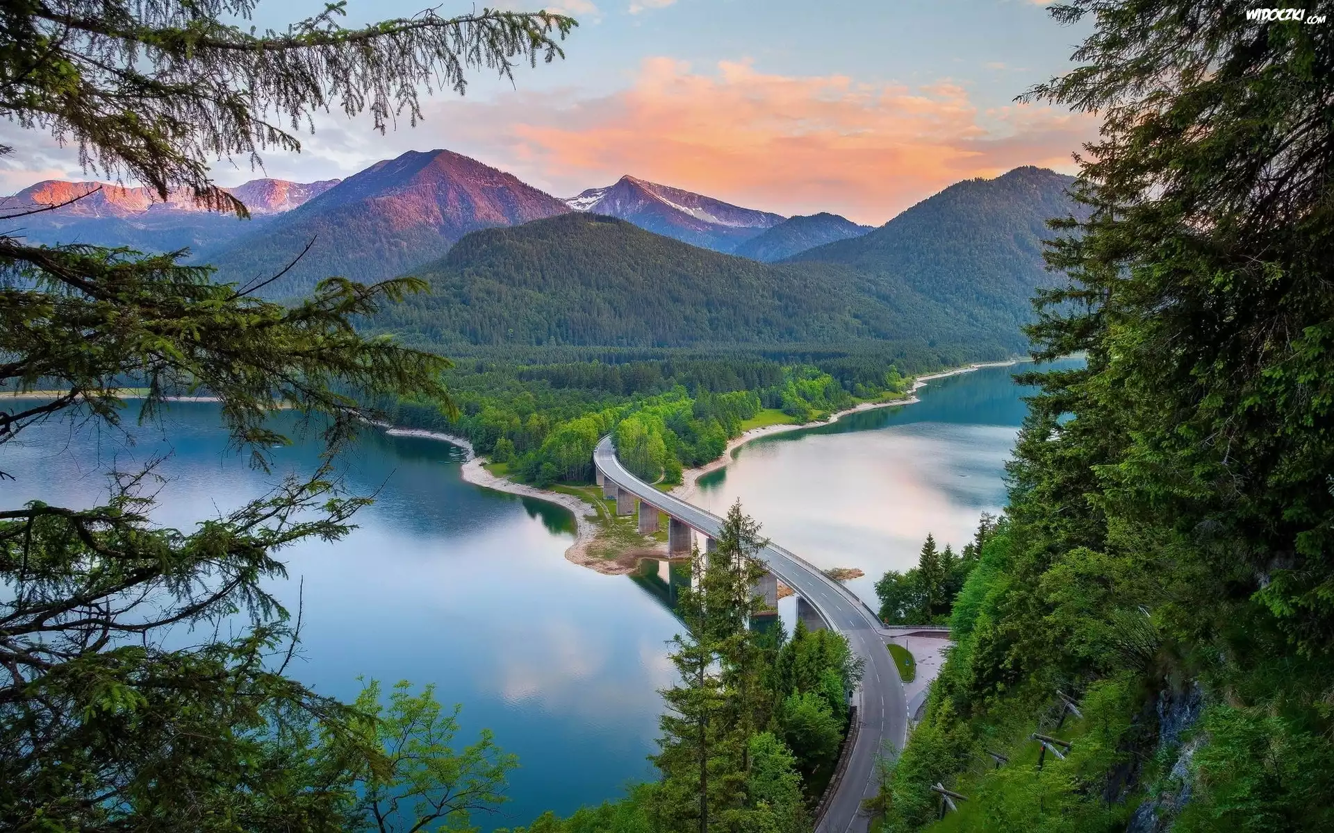Góry, Rzeka, Zachód, Słońca Chmury, Wiatrak, Rzeka Czerwony, Kwiat, Potok, Wodospad, Kamieni Potok, Ścięte, Drzewa Góry, Lasy, Rzeka, Łódka Góra, Jeziora Góra, Chmury Zielona, Łąka, Wąska, Rzeczka, Drzewa Góra, Wodospady, Morze Góra Góra, Jeziora Góra, Chmury, las Niemcy, Bawaria, Park Narodowy Berchtesgaden, Ramsau bei Berchtesgaden, Góry Alpy, Kościół św. Sebastiana, Rzeka Ramsauer Ache, Mostek Góra
